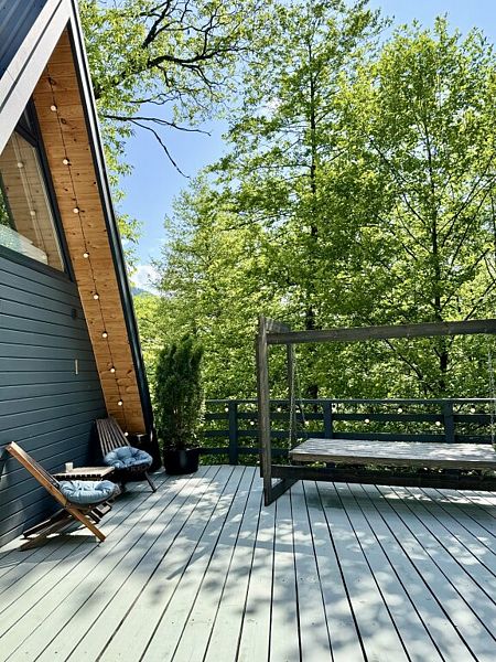 Откройте для себя умиротворение в стильном шале у реки, где шум цивилизации сменяется шелестом листвы и журчанием воды.