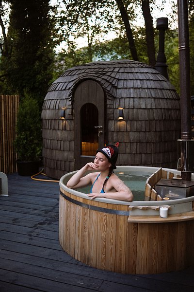 В завершение — восторженные контрастные процедуры в холодной купели, полёт на качели и затем полное расслабление в купели «Фурако».