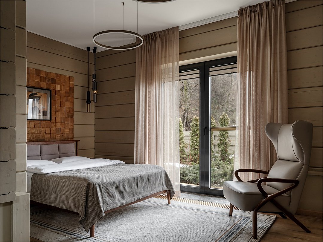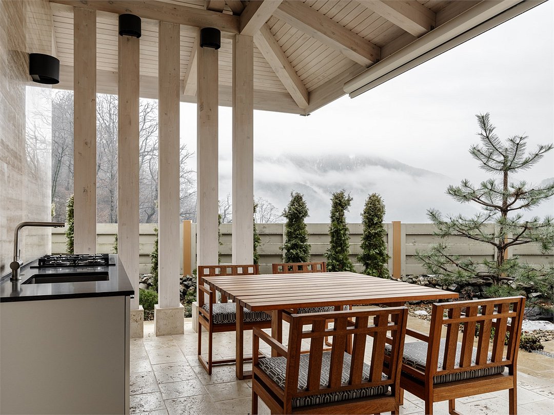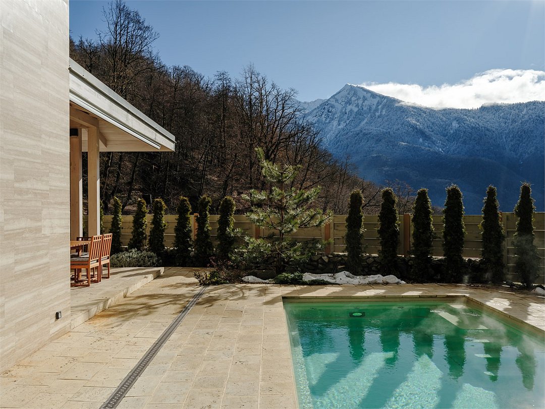 Насладитесь волшебными видами гор в стильном двухэтажном Шале с террасой, подогреваемым бассейном и баней. 4 спальни с индивидуальными ванными комнатами. В гостиной высокие потолки и панорамные окна. С террасы открывается великолепный вид на горы. В вашем распоряжении кухня, полностью оборудованная премиальной техникой и посудой BORK. В двухэтажном шале комфортно разместится до 8 человек. На первом этаже расположена просторная гостиная с кухней и камином, 3 спальни с собственными ванными комнатами. На втором этаже – спальня с ванной. На территории шале находится подогреваемый бассейн, всесезонная кухня на открытом воздухе с грилем и зоной отдыха. Баня на дровах. Сервис в шале: - администратор/ресепшн, - ежедневная уборка, трансфер (по запросу).Шале