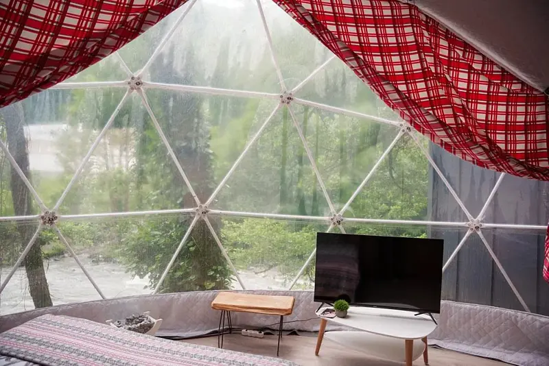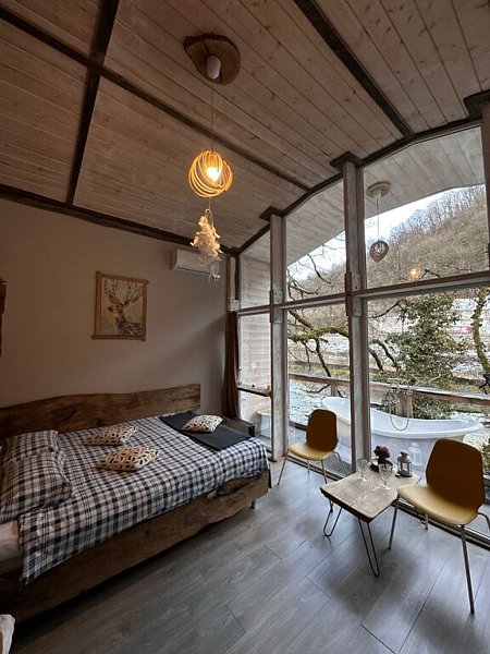 Испытайте совершенно новый уровень комфорта и стиля в глэмпинге «В Потоке», находящемся на берегу реки Мзымта.