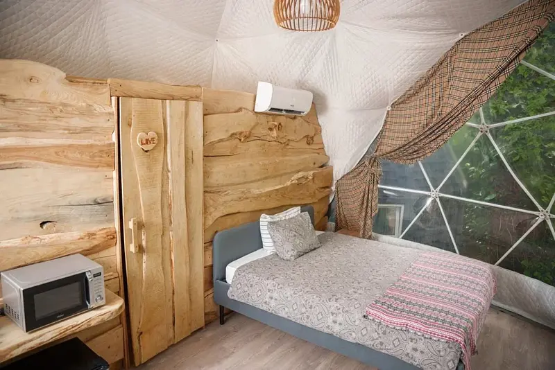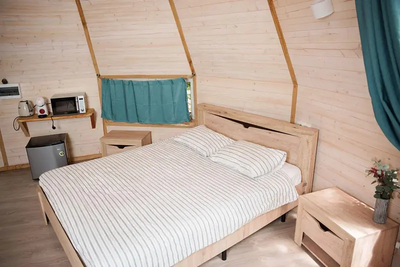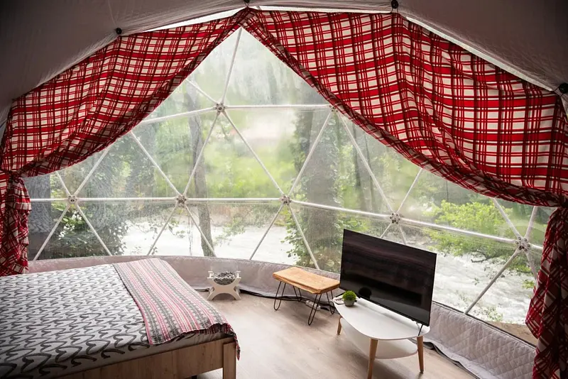 Путешествие с семьейОчень уютный глэмпинг в Красной полянеМы недавно посетили данный глэмпинг и осталась довольны его услугами. Дом был уютным, чистым и с прекрасным видом на реку и деревья. Персонал был очень доброжелательным и готовым помочь в любое время. Особую благодарность хочу выразить Юлии, которая нас заселила и помогла решить все интересующие нас вопросы. Так же понравилась зона с мангалом. Есть все необходимое для шашлыка. Юлия так же сказала, что мы можем купить угли и розжиг у них и не беспокоиться об этом моменте. В общем, рекомендую этот глэмпинг всем, кто хочет провести время на природе с комфортом.