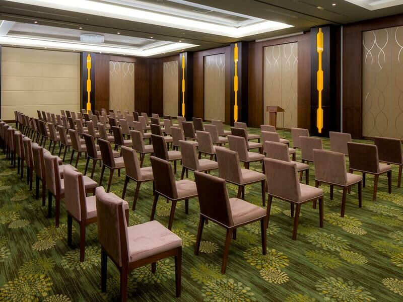 Главной особенностью Novotel Congress Krasnaya Polyana является уникальный многофункциональный зал-амфитеатр площадью 350 кв.м и вместимостью 250 человек для проведения конференций со спикерами, показов профессиональных фильмов, организации бизнес-игр.