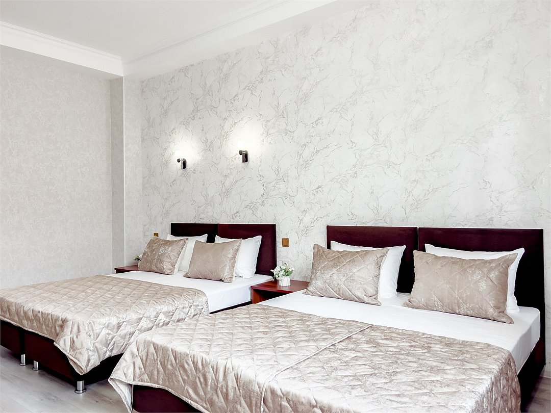Просторный и функциональный номер площадью от 20 до 22 кв.м с видом на городской пейзаж. Оснащен всем необходимым для комфортного пребывания: удобные кровати и диван, эргономичная рабочая зона с удобным столом и креслом, современная ванная комната. Идеальный выбор для деловых поездок и семейного отдыха с возможностью размещения до 4 человек.Услуги и удобства