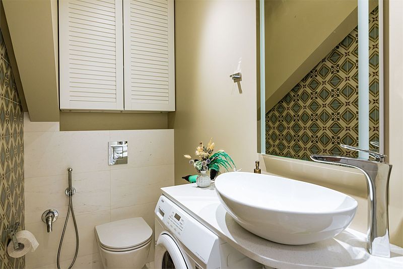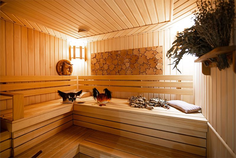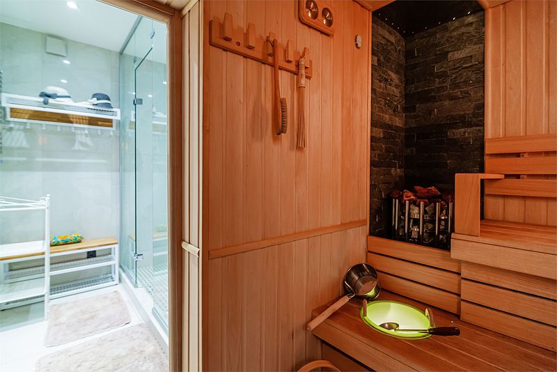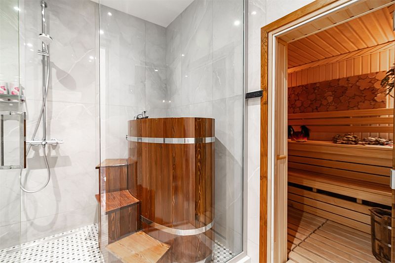 На первом этаже также расположена сауна с банными аксессуарами.