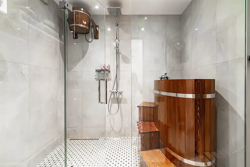 Расположенная на первом этаже, сауна в шале оборудована всем необходимым для полного расслабления и удовольствия. Вы будете восхищены элегантным оформлением и стильными деталями, которые создают уютную обстановку. Вы сможете наслаждаться теплом и ароматами дерева, забыв о повседневной суете и полностью отдавшись умиротворенному отдыху. Кроме того, в сауне имеются все необходимые банные атрибуты.