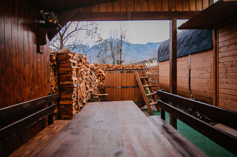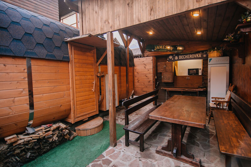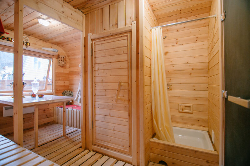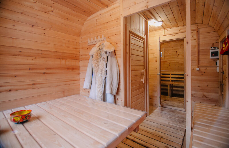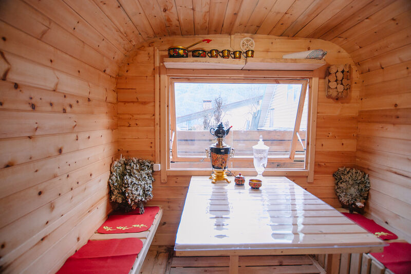 Настоящая русская парная, с печью на дровах. Дарит чудесный жар и аромат.