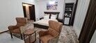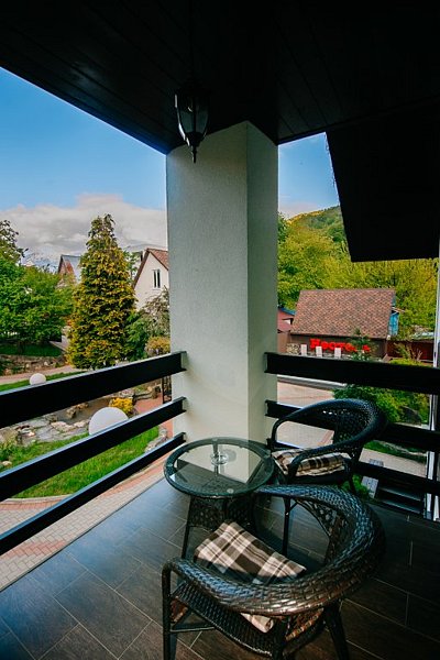 Кровать king-size, диван-кровать, балкон с мебелью, санузел с душем, телевизор, холодильник, микроволновая печь, чайник, посуда