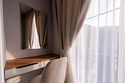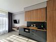 Дизайн номера воплощает современный стиль в умиротворяющих тонах, подчеркнутый благородными акцентами из стекла и дерева. Ванная комната оснащена всем необходимым для безупречного пребывания: оборудованной кухней и стиральной машиной. Номера данной категории расположены на 1 этаже нашего отеля.Услуги и удобства
