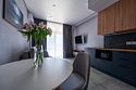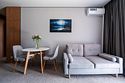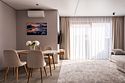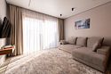 Просторный балкон, оборудованный всесезонной мебелью с мягкими подушками и кофейным столиком, создающим идеальное пространство для любой погоды. Ощутите волшебство, встречая здесь первые лучи солнца или провожая день с чашкой любимого напитка, а для дополнительного комфорта в холле предусмотрено раскладное кресло-кровать. В номере есть все для комфортного проживания: оборудованная кухня, стиральная машина.Услуги и удобства