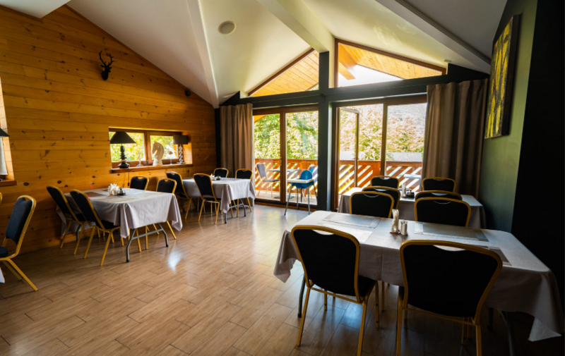 Большинство комнат оборудовано балконами, с которых открываются превосходные виды. Ими можно любоваться в любое время суток. В собственном ресторане гостевого дома «Шале» работают профессиональные повара. В меню предлагаются блюда европейские кухни, а в летнем баре можно попробовать всевозможные коктейли, напитки. На территории всего комплекса действует бесплатный Wi-Fi. Для постояльцев с личным автотранспортом имеется бесплатная парковка. Добраться до места можно самостоятельно или воспользоваться услугами трансфера.