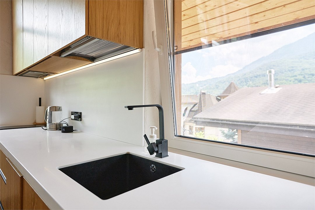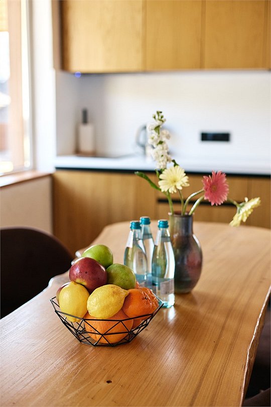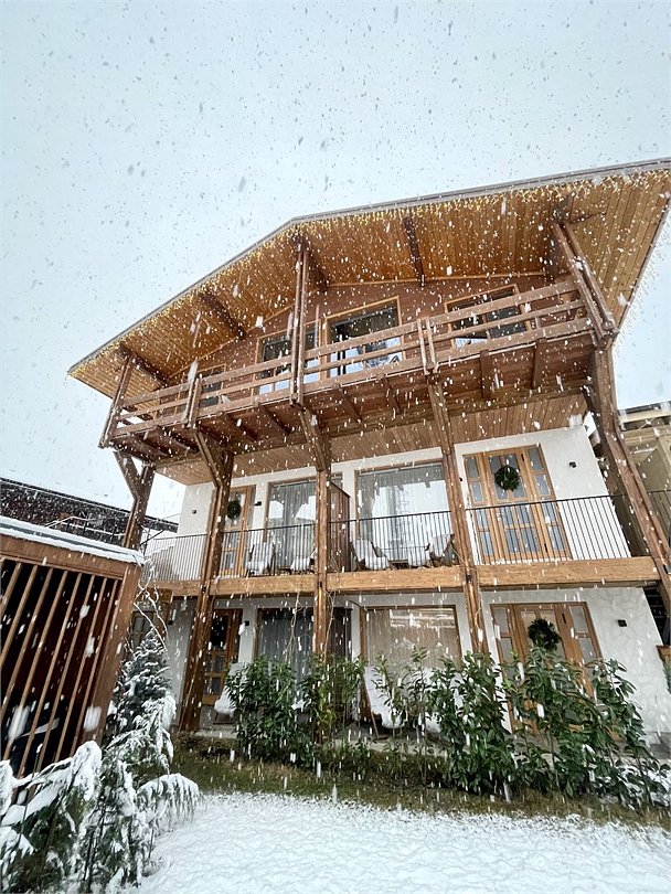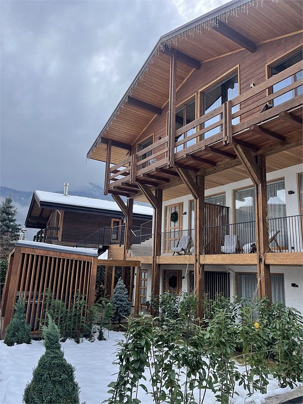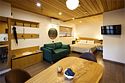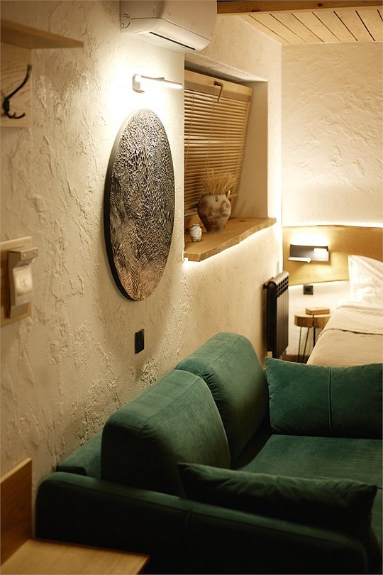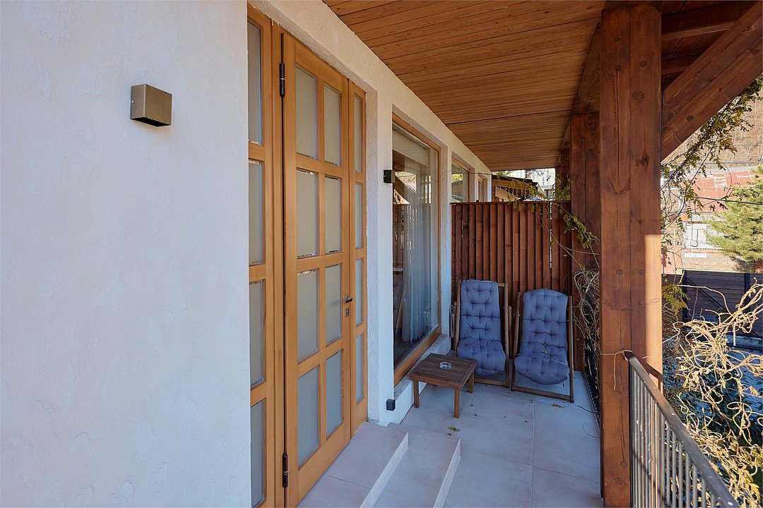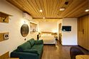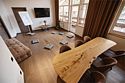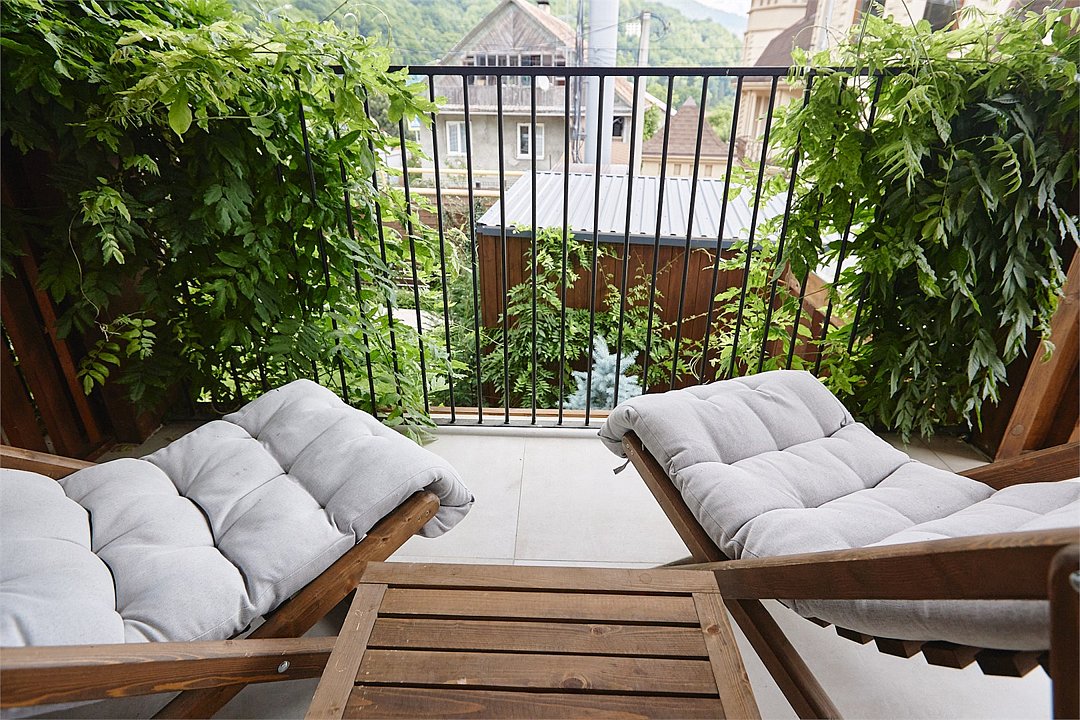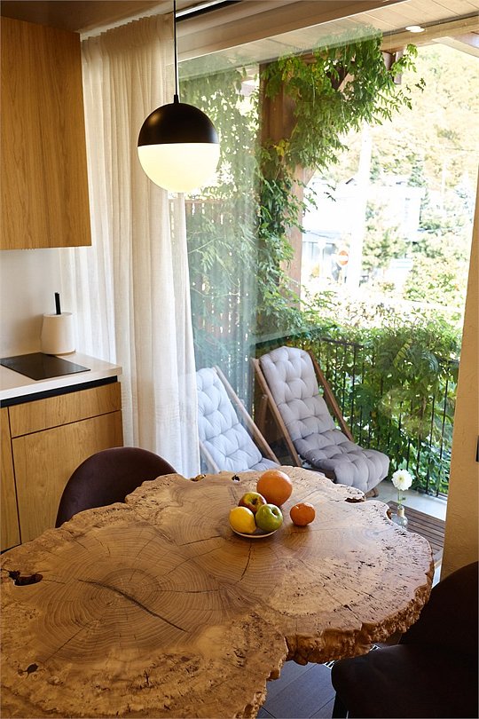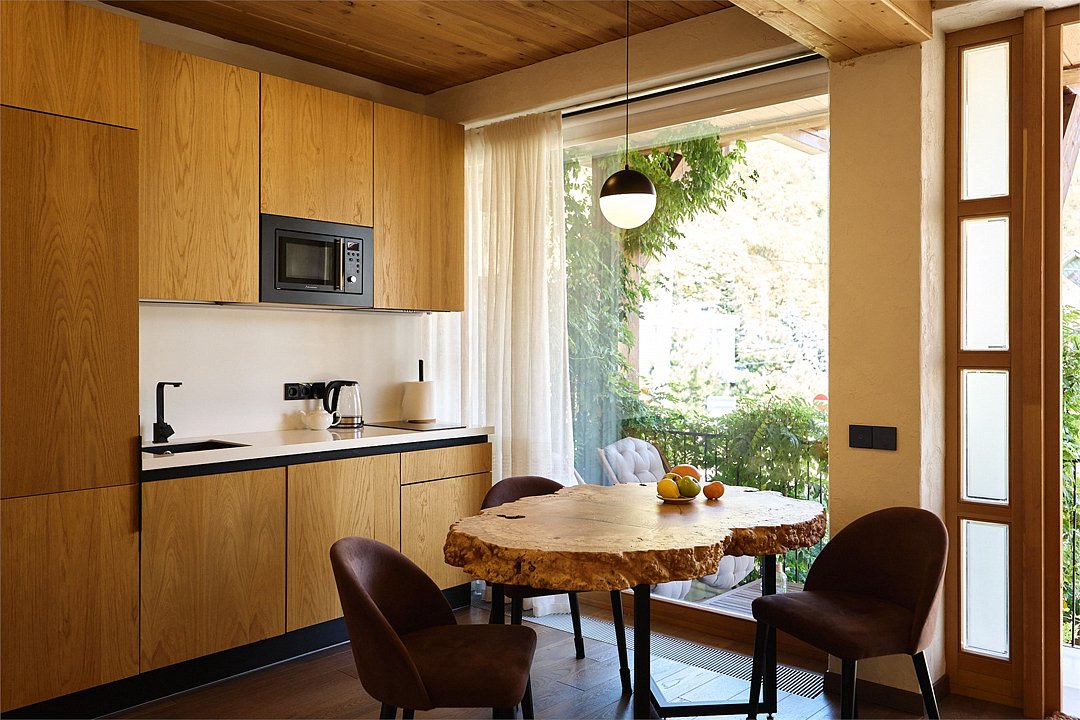 Просторные апартаменты для большой компании на 3 этаже 80 кв. м, с мансардным высоким потолком, панорамными окнами и длинным балконом. В распоряжении Гостей роскошная гостиная-кухня и две изолированные спальни, 2 санузла с душевыми кабинами и стиральной машиной. В каждой спальне двуспальная кровать, в гостиной раскладывающийся диван. Есть также секретное спальное место для "Карлсона". Кухня оборудована варочной панелью, микроволновой печью и посудомоечной машиной, есть чайник и вся необходимая посуда. ДУХ возвышается над окрестностями, в номере много света, открывается прекрасный вид на горы и лесУслуги и удобства