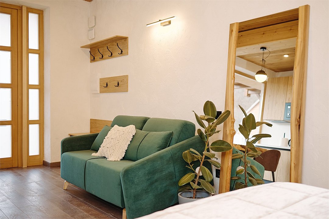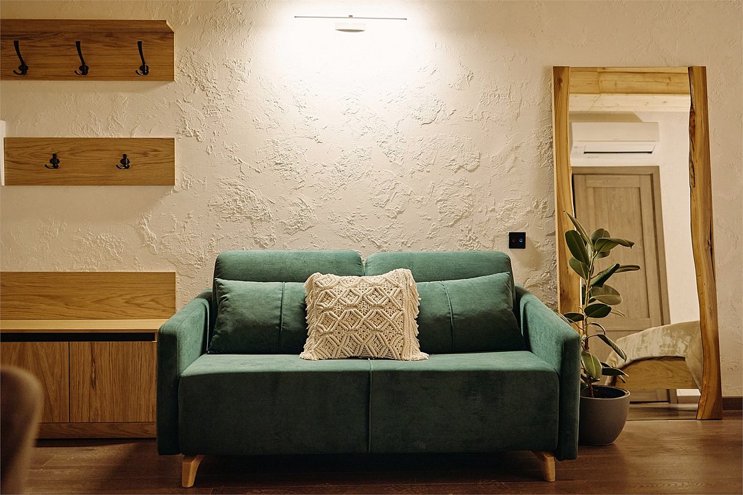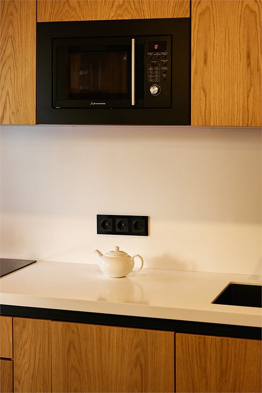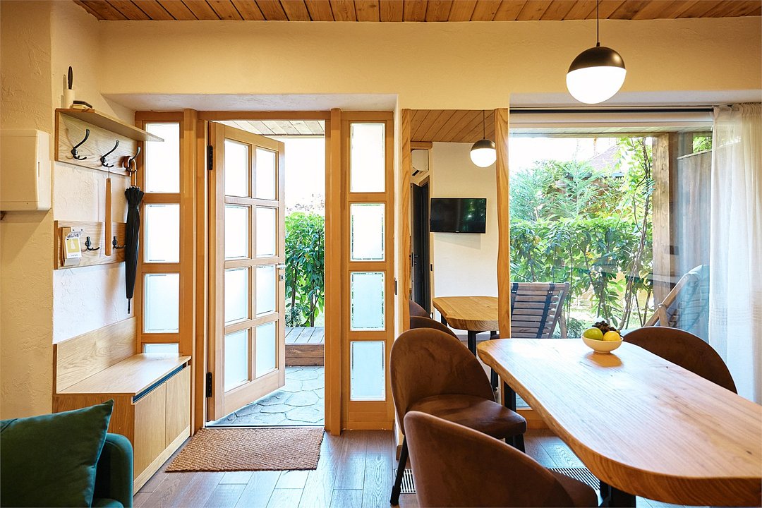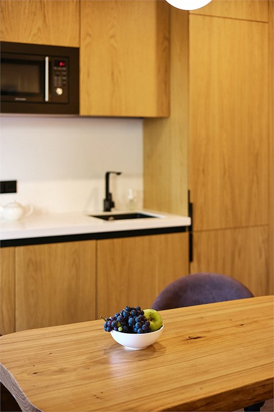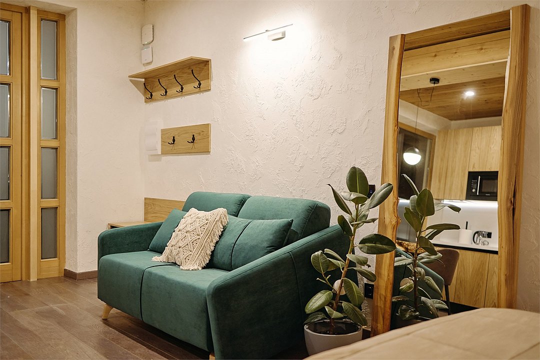 Апартамент на 1 этаже с удобной кроватью и раскладывающимся диваном, а также с современной оборудованной кухней. В ванной комнате душевая кабина и стиральная машина. Номер наполнен качественной мебелью. Здание построено с использованием современных отделочных материаловУслуги и удобства