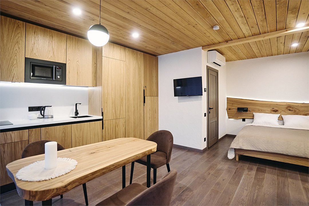 телевизор, кабельное телевидение, Wi-Fi, холодильник, кондиционер, фен, плита для приготовления пищи, микроволновая печь, утюг, санузел, теплый пол, банные полотенца, балкон с красивым видом, кровать «Queen size», гладильная доска, шкаф для одежды, вешалки, обеденный стол, зеркало, обслуживание номеров, посудомоечная машина, стиральная машина, мягкая мебель, обеденная зона, отопление, отдельный вход в номер, душ, вид на город, кресло, вид во двор, окна выходят в атриум отеля, ламинат, высокие потолки, кухонная посуда, кухонная утварь, столовые приборы, стул, тумба, туалет, мангал, принадлежности для барбекю, диван-кровать, раскладной диван, телевизор с плоским экраном, кухонный уголок, вид на горы, теплые полы, вид на лес, холодильный шкаф, можно с питомцамиВ аппартаментах