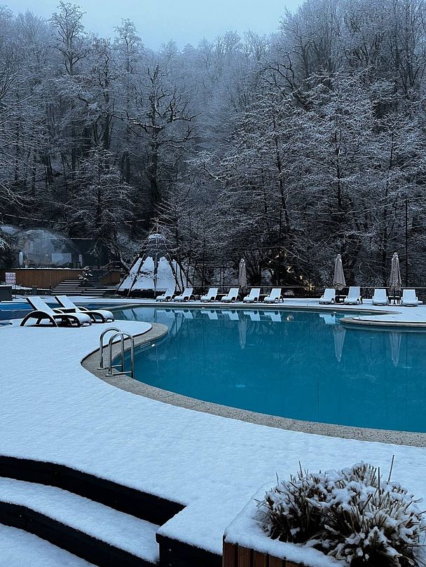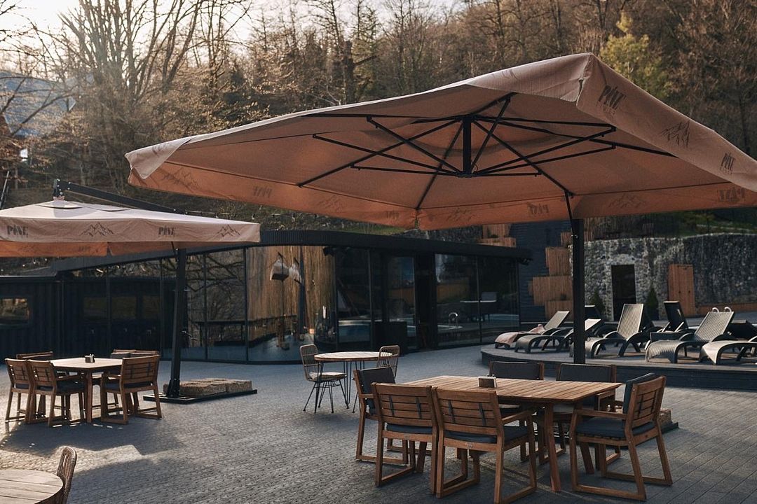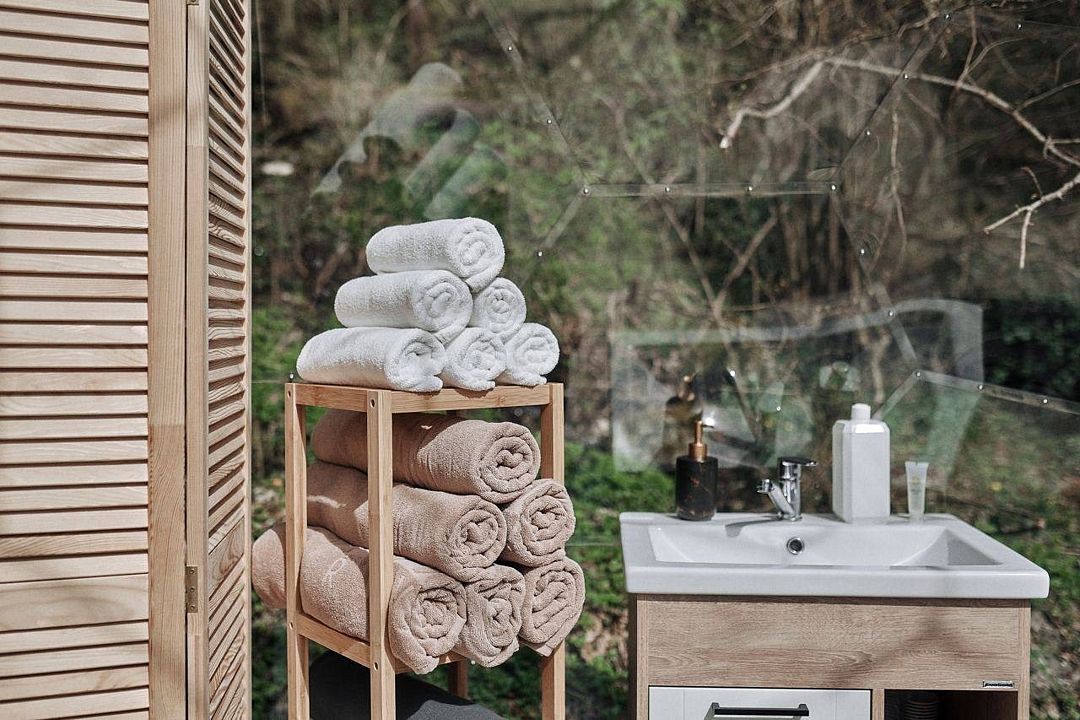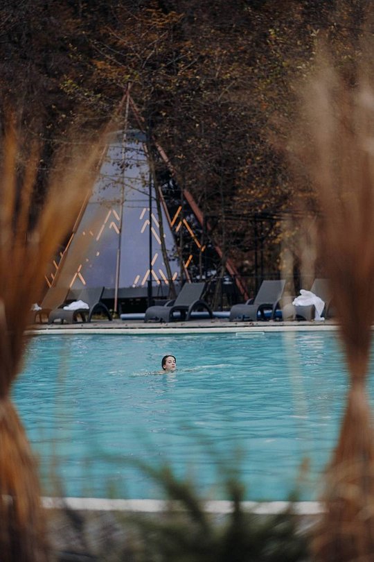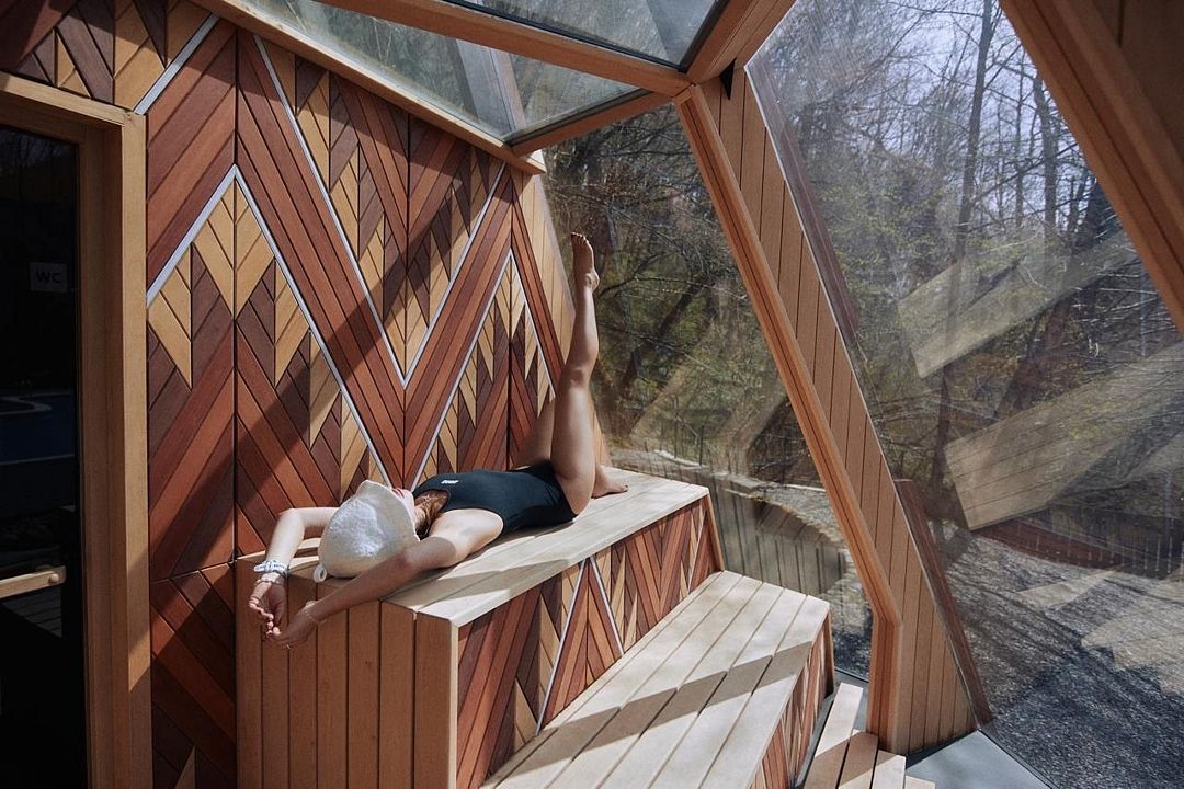 Панорамный кабинет в виде купола открывает вид на зеленый лес и величественные горы. Он расположен в уединенном месте — вы будете защищены от посторонних глаз и сможете спокойно наслаждаться массажем и пейзажами.