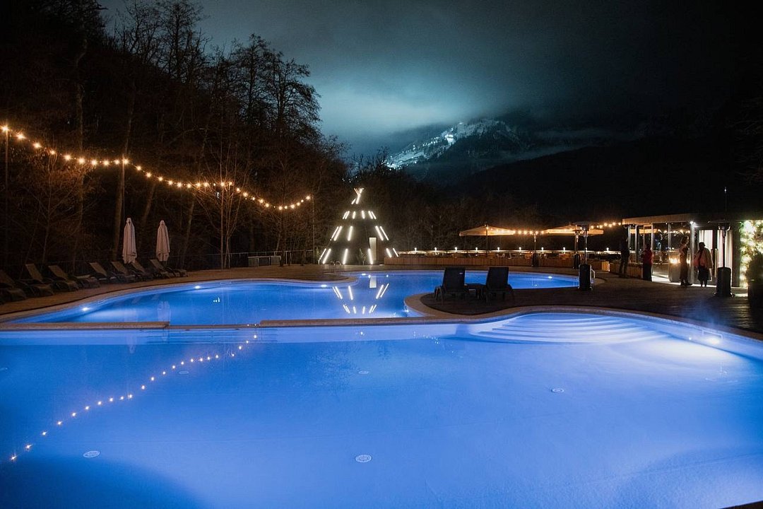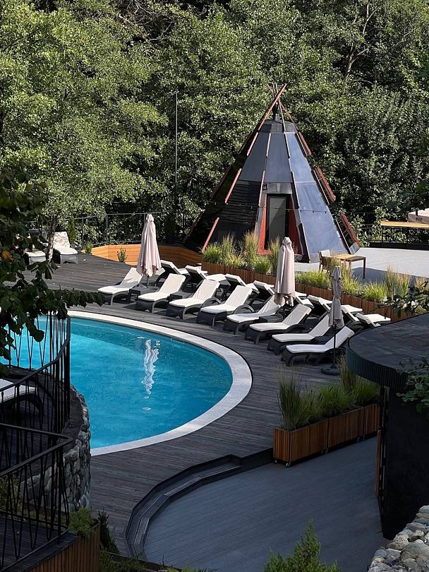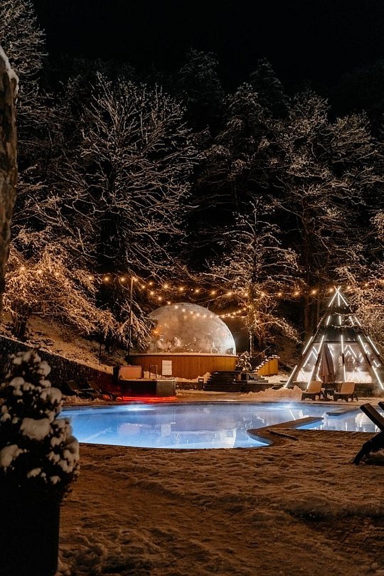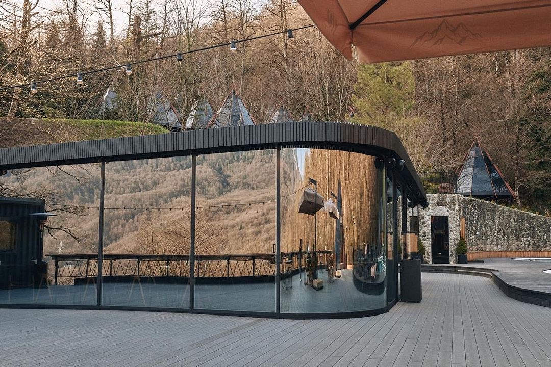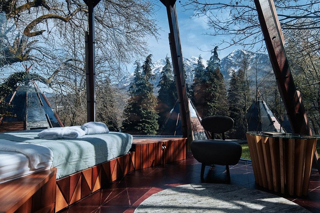 Для размещения доступны «НеоТипи» — уникальные номера со стенами из закаленного стекла и обзором 360 градусов, которые открывают панорамный вид на горы.