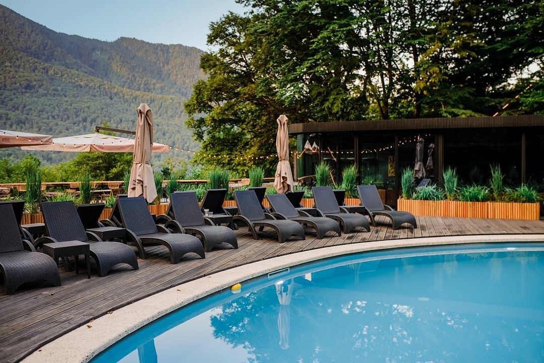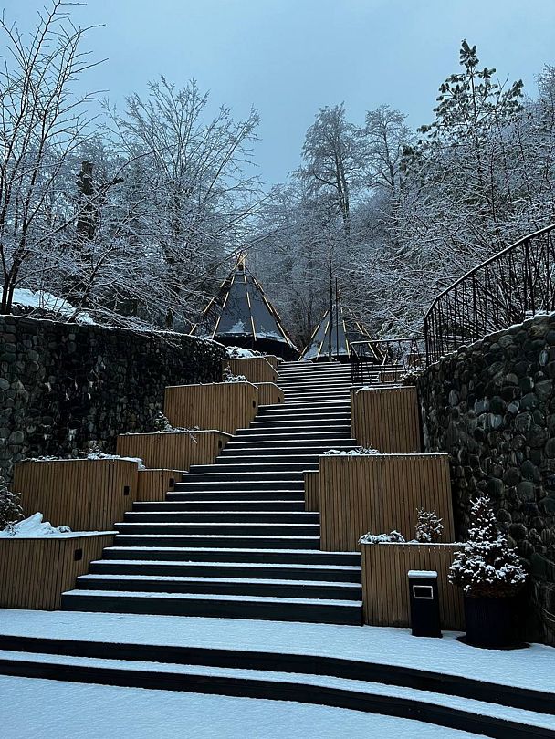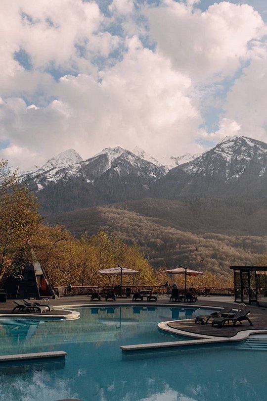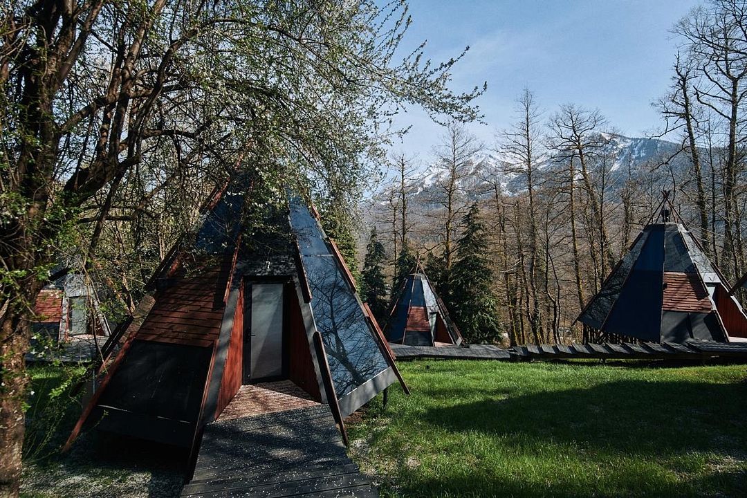 Глэмпинг «Pine River» раскинулся в самом сердце гор, в одном из самых живописных мест на просторах Красной Поляны.