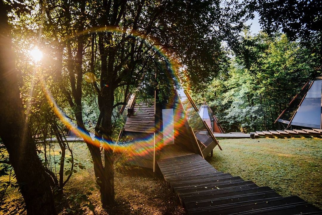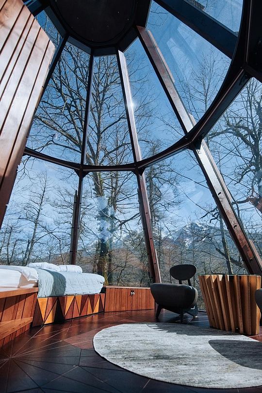 Панорамные домики в окружении деревьев — полное единение с природой и ее истоками.