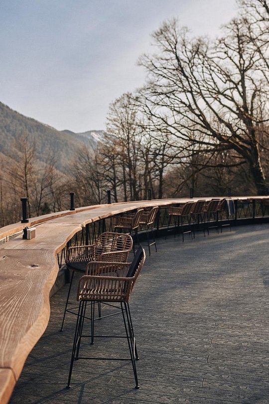 Читать полностьюМесто с захватывающим видом на горный хребет Аибга и авторским меню, где переплетается европейская кухня и блюда с кавказским акцентом, а фирменные напитки дарят прохладу в жару и согревают прохладными вечерами.