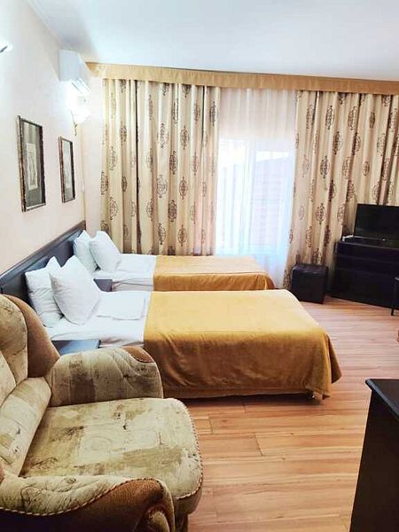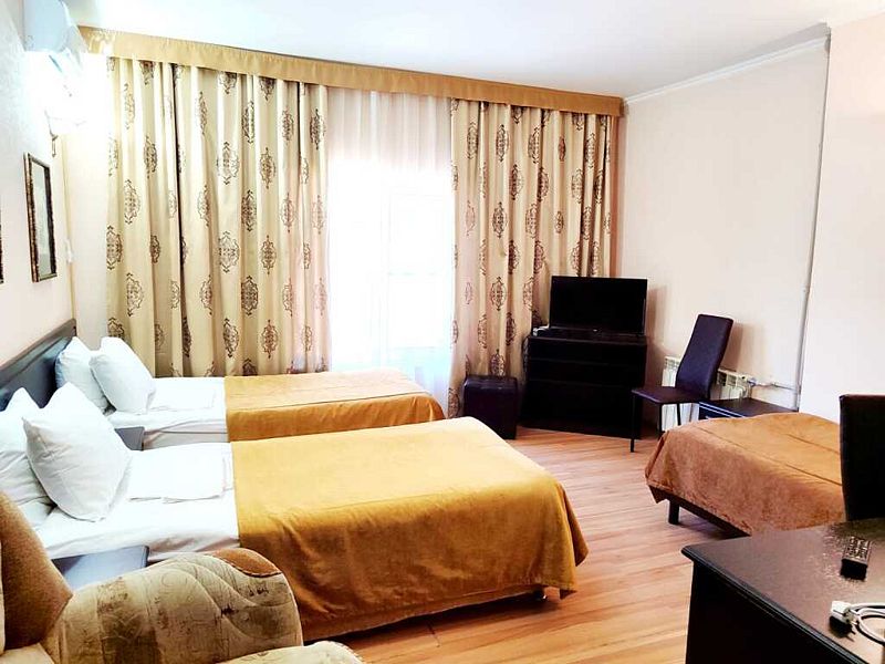 Короткий отпуск с друзьямиГостеприимный бюджетный отельБюджетный отель на тихой улице, параллельно с основной. В шаговой доступности большой молл, аптека, магазины. кафе. Во дворе кран с родниковой водой - нет проблемы питьевой воды. Мы брали мансарду (4 кровати), без кондиционера, в июне было душновато, под утро норм. Номер не идеален, но все необходимое непритязательному путнику, включая мыльно-рыльные принадлежности, имеется. Кровати удобные, постель и полотенца хрустящие. Горячая вода без проблем. Есть услуги прачечной - 250 руб одна закладка. Стоимость проживания составила 500 руб на человека без завтраков. Но самое главное, что хотелось бы отметить, - это персонал. Очень гостеприимные люди, готовые помочь с каждой мелочью, за что им огромное спасибо.