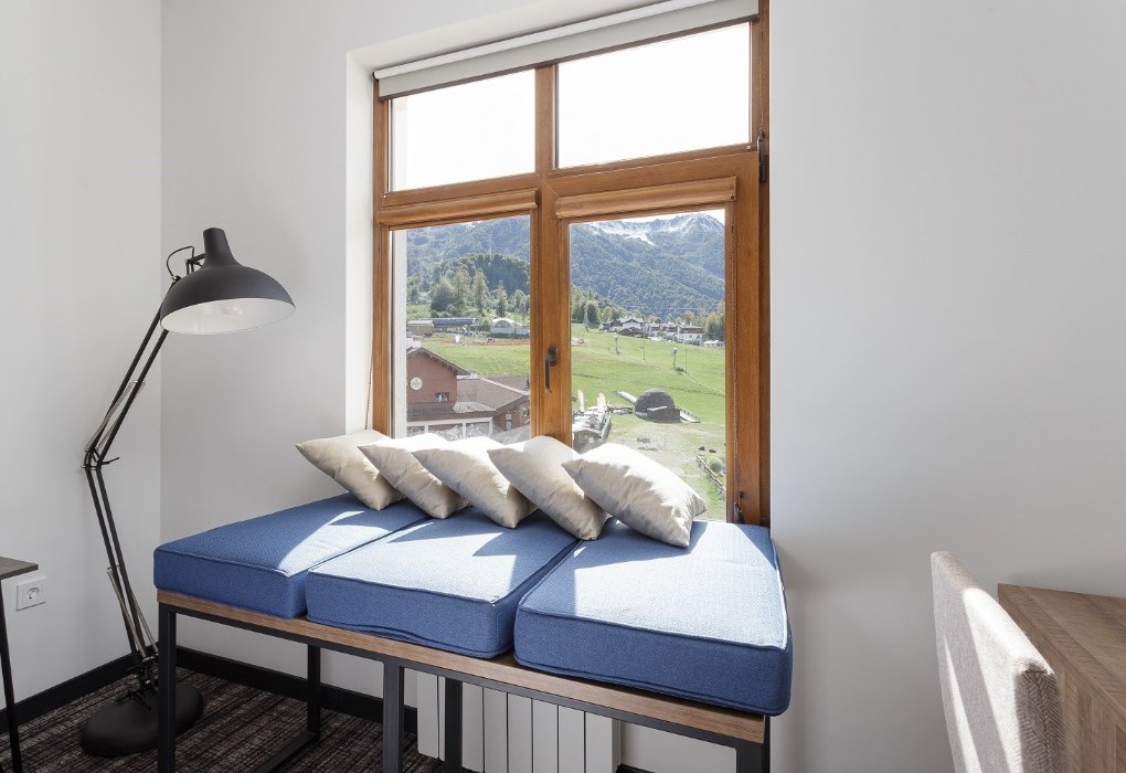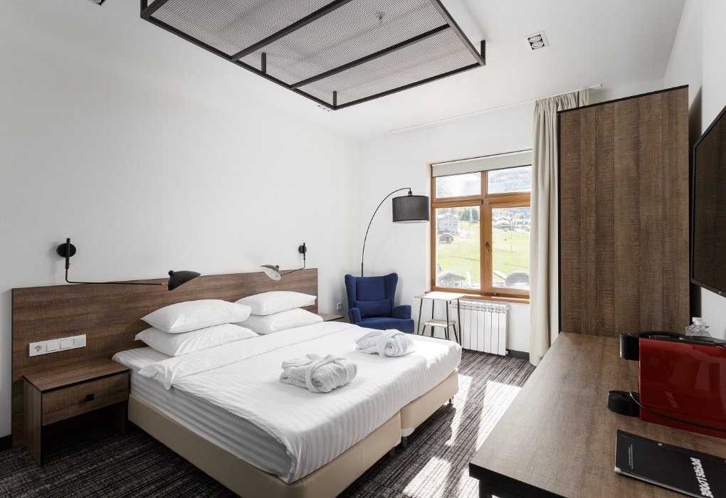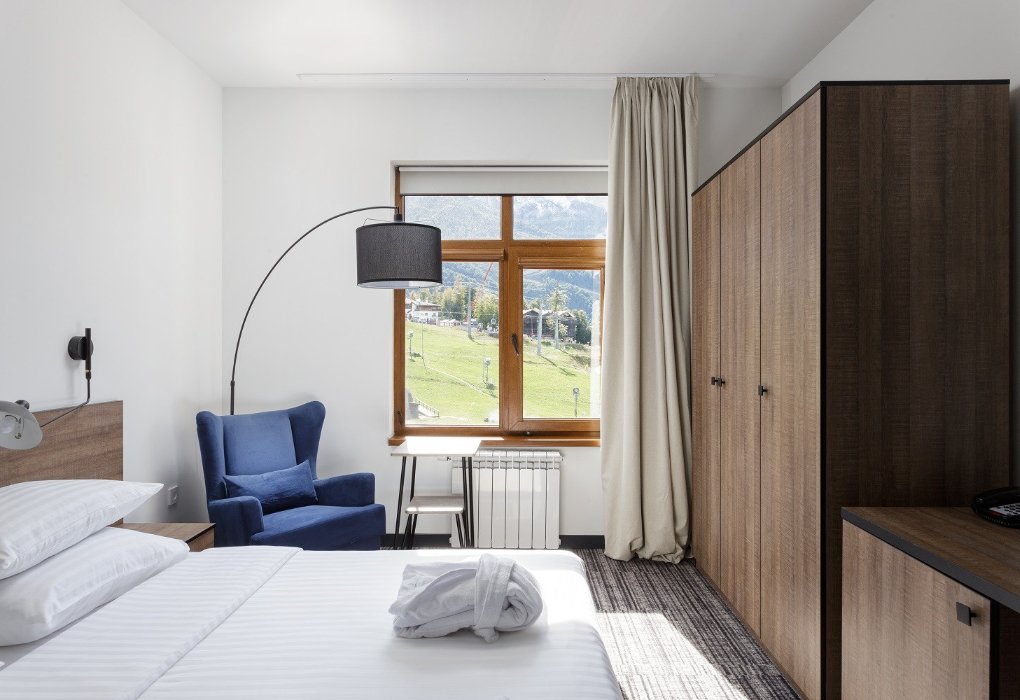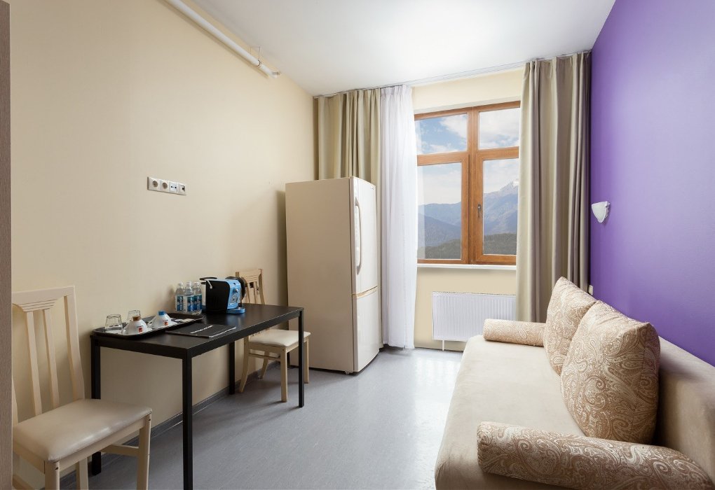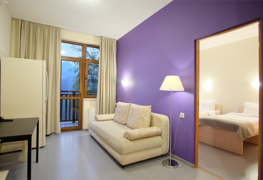 Номер с балконом и двуспальной кроватью, которая трансформируются в две односпальные. В зависимости от расположения, вид из категории может открываться на Плато Псехако или склоны и пик горы Аибга