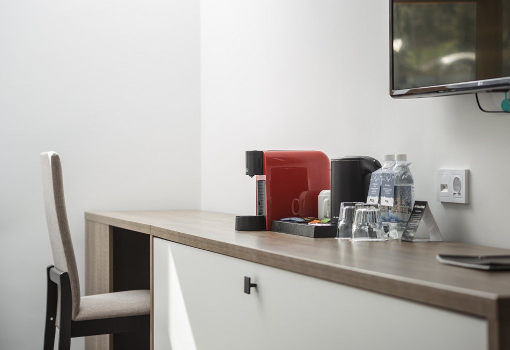 Что касается плюсов номера, это: наличие халата и тапочек, наличие холодильника, кофемашины, чайника, пакетиков и капсул, кружек. Хороший вид с балкона. Кровати были удобные, шкафы вместительные.