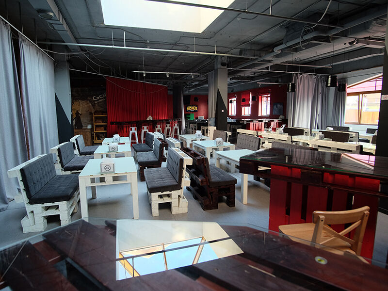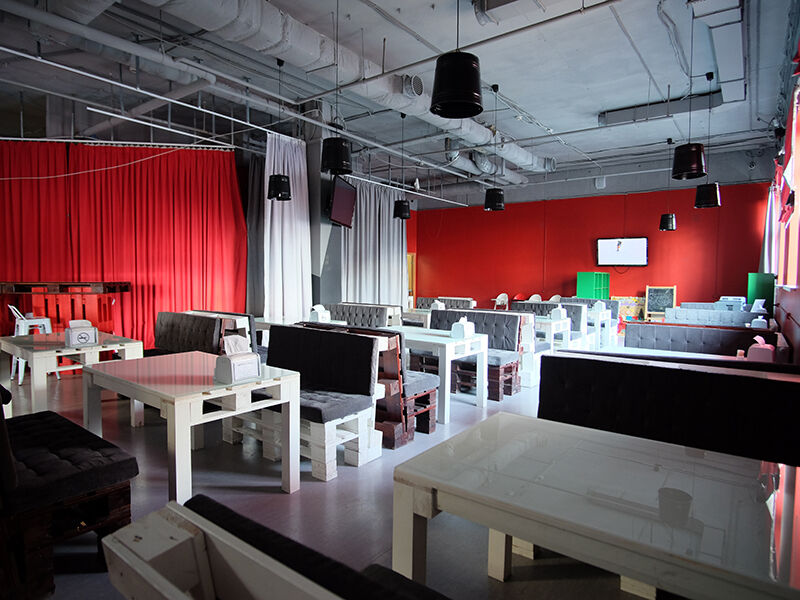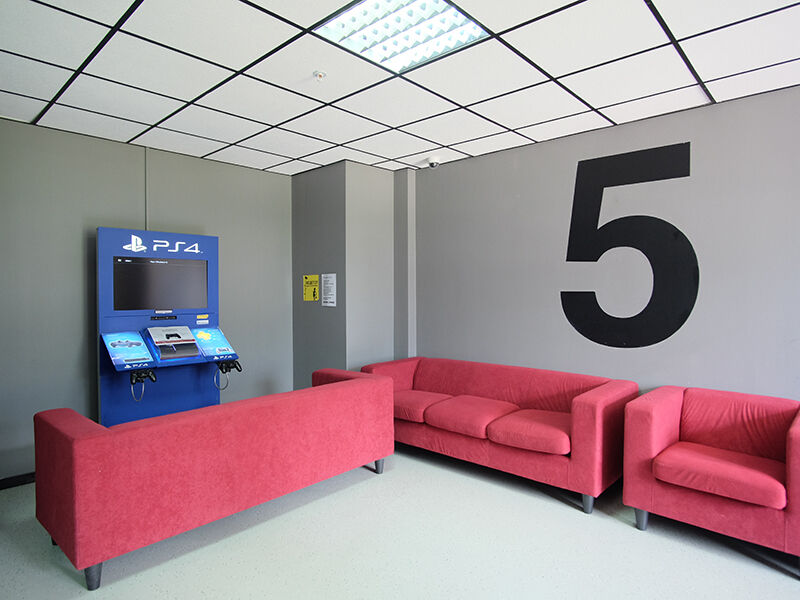 На первом этаже есть Плейстешн, кикер, настолки, кинозал