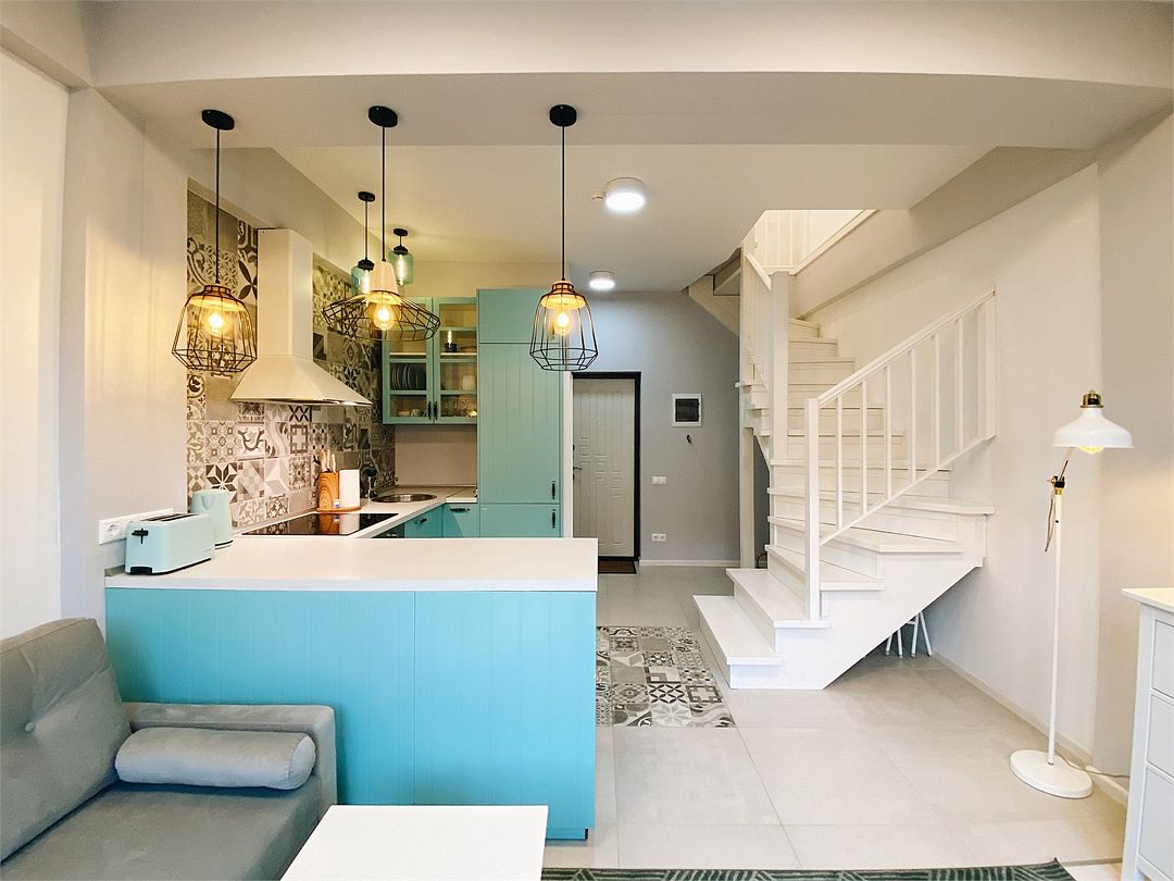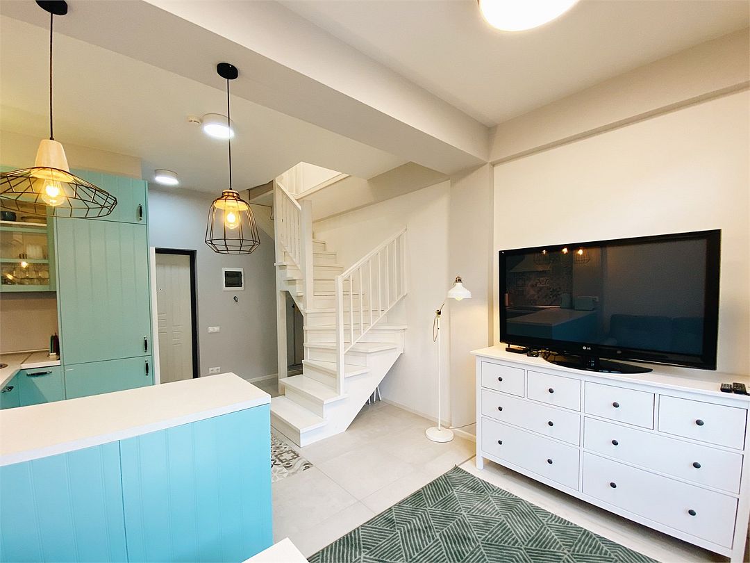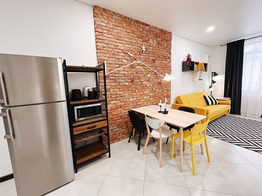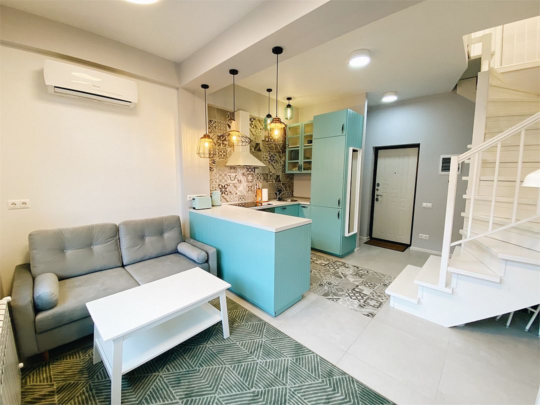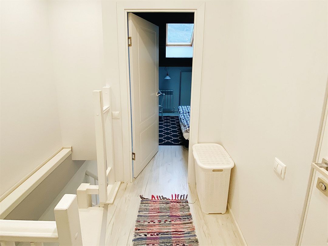 Новая двухэтажная уютная квартира-студия с кухней-гостиной на первом этаже и спальней на втором. Максимальный комфорт и все необходимые удобства. Очень крутой панорамный вид на горы! На первом этаже — раскладной двухместный диван. На втором — спальная с большой двухэтажной кроватью, уютным рабочим местом и санузлом. Вся необходимая техника. Отличное расположение в центре Красной Поляны: остановка ски-баса — 200 метров. На первом этаже отличная столовая и Сбербанк. Все остальное тоже рядом.Услуги и удобства