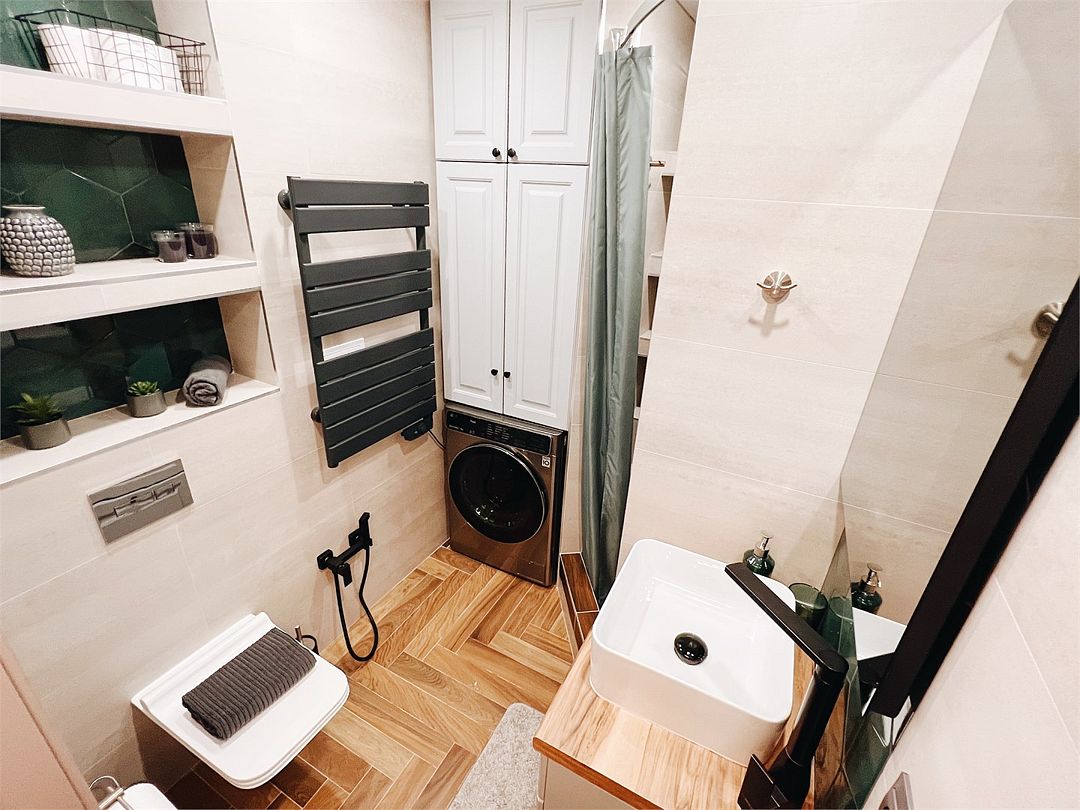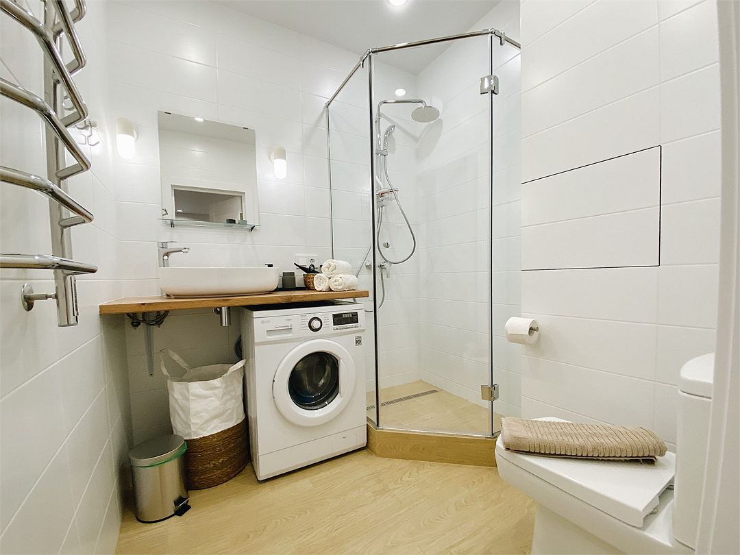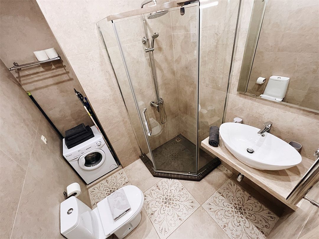 Wi-Fi, интернет, холодильник, фен, вентилятор, плита для приготовления пищи, утюг, ванная комната, душевая кабина, санузел, теплый пол, банные принадлежности, банные полотенца, гигиенические средства, двуспальная кровать, гладильная доска, диван, стулья, вешалки, обеденный стол, зеркало, набор посуды, стиральная машина, чайник, унитаз, раковина, душ, ламинат, кухонная посуда, стаканы, кухонная утварь, столовые приборы, стул, стол, туалетные средства, туалет, цифровое тв, диван-кровать, раскладной диван, телевизор с плоским экраном, москитная сетка, вид на горы, телевизор со Smart TV, теплые полы, можно с питомцамиВ апартаментах