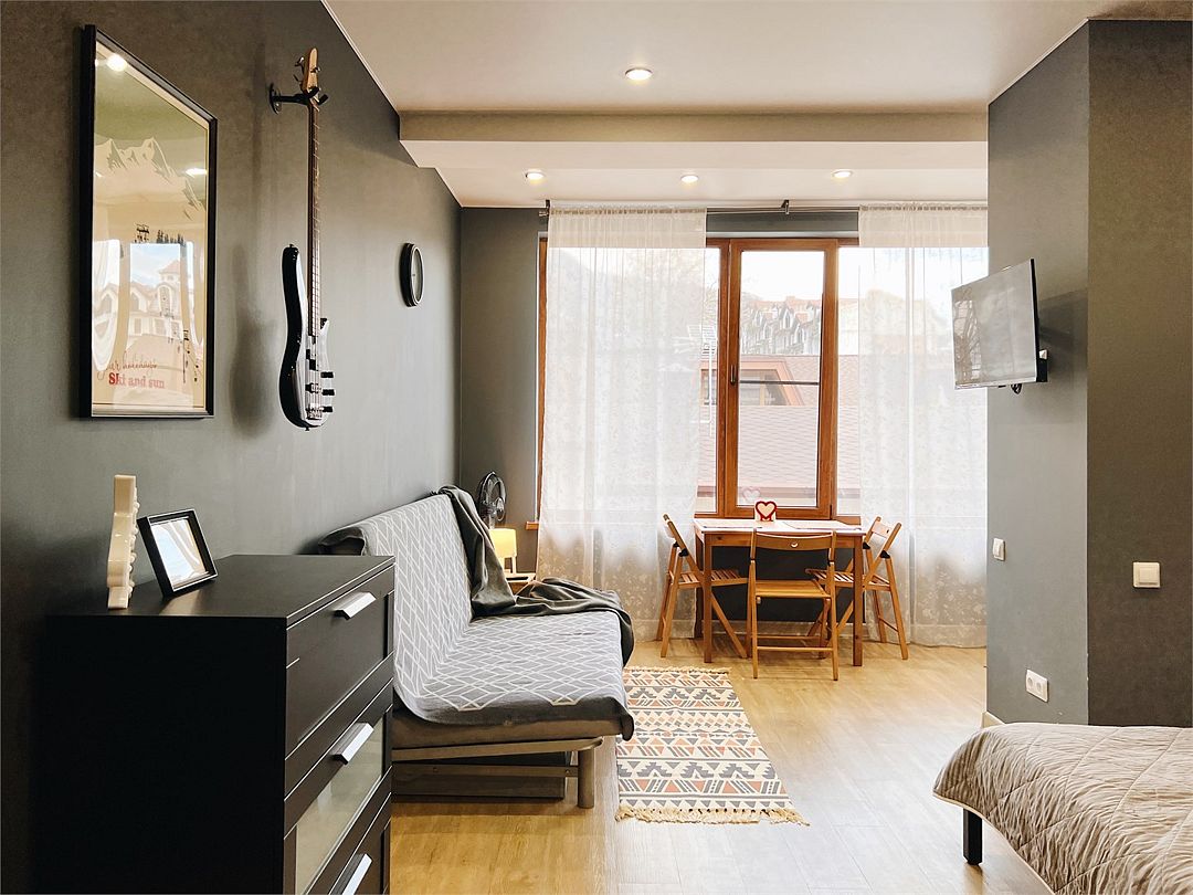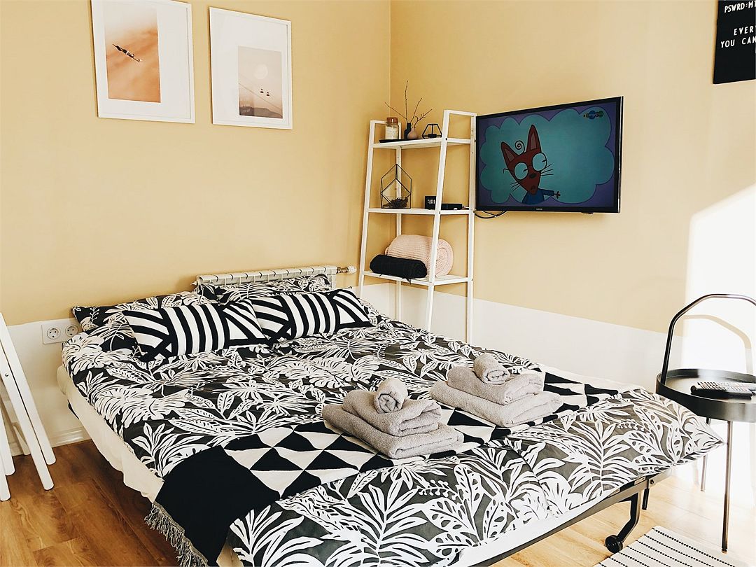 Небольшая новая уютная однокомнатная квартира-студия с отдельной отгороженной спальней и кухней-гостиной. В спальне — двуспальная кровать, в гостиной — раскладной двухместный диван. Вся необходимая техника. Отличное расположение в центре Красной Поляны: остановка ски-баса — 100 метров, в соседнем доме — супермаркет Пятёрочка. Рестораны, парк, банкомат, поликлиника тоже в шаговой доступности. 100% лучшее сочетание цены и качества.Услуги и удобства