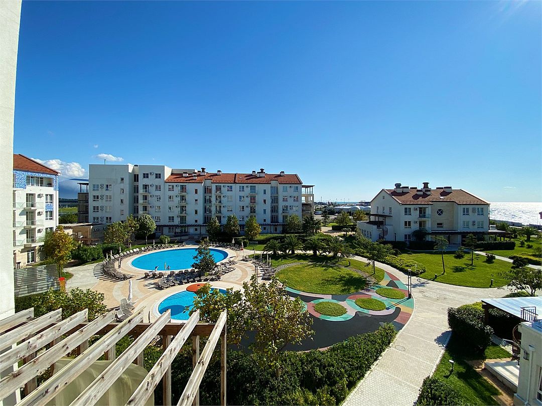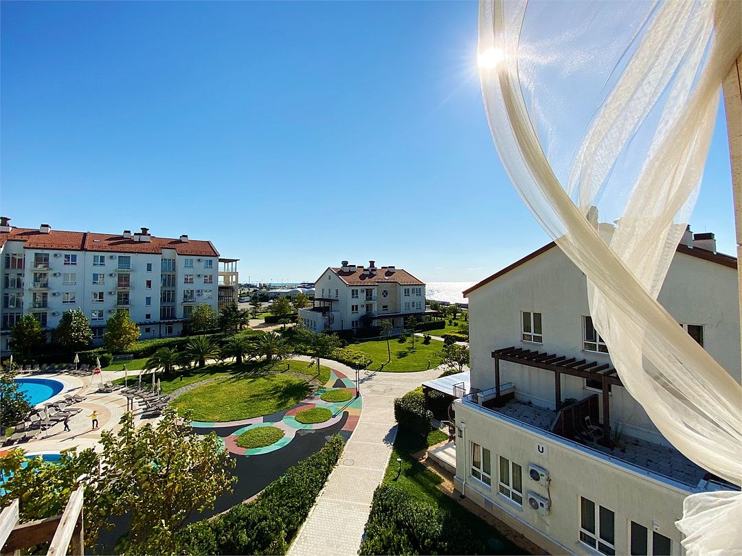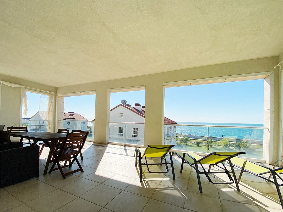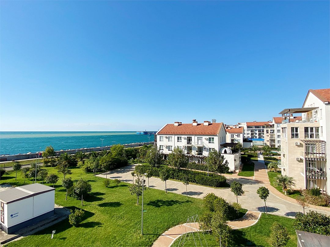 Просторная и стильная квартира на первой линии у моря, с прямым видом на море и Кавказские горы из всех окон — редкое сочетание уюта, приватности и впечатляющих видов в самом сердце Имеретинской бухты. Три изолированные спальни, два санузла и большая терраса, где приятно начинать день с чашкой кофе, устраивать ужины на свежем воздухе или просто отдыхать на шезлонге под южным солнцем. Квартира находится в элитном малоэтажном жилом комплексе «Имеретинский» с круглосуточной охраной, закрытой территорией и развитой инфраструктурой. На территории — открытый подогреваемый бассейн, отдельная детская зона с навесом от солнца, уютные кафе и рестораны, а также отель «Имеретинский» с высоким уровнем сервиса. Есть парковка. Это жильё для тех, кто ценит тишину, комфорт и настоящую эстетику южного побережья, но не готов идти на компромиссы в уровне сервиса и удобствах. Огромная терраса с видом на море, шезлонгами и обеденной зоной, 3 спальни, 2 санузла, гостиная, все необходимые удобства. Идеальное расположение: 10 мин. на такси до аэропорта, 30 мин. до Красной Поляны.Услуги и удобства