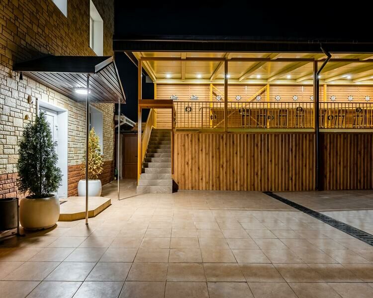 1. Отель относительно новый (3 года), территория огорожена, вход по домофону или по брелоку. Чужие не заходят, только гости отеля. Всего 12 номеров на два корпуса.