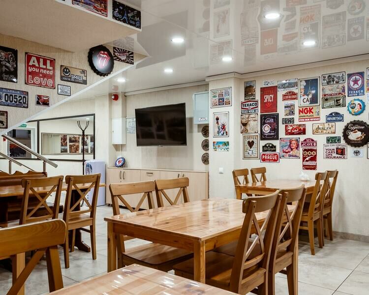 На первом этаже имеется столовая. Так же в пешей доступности имеется супермаркет.
