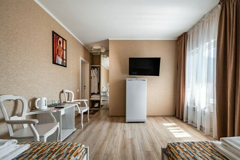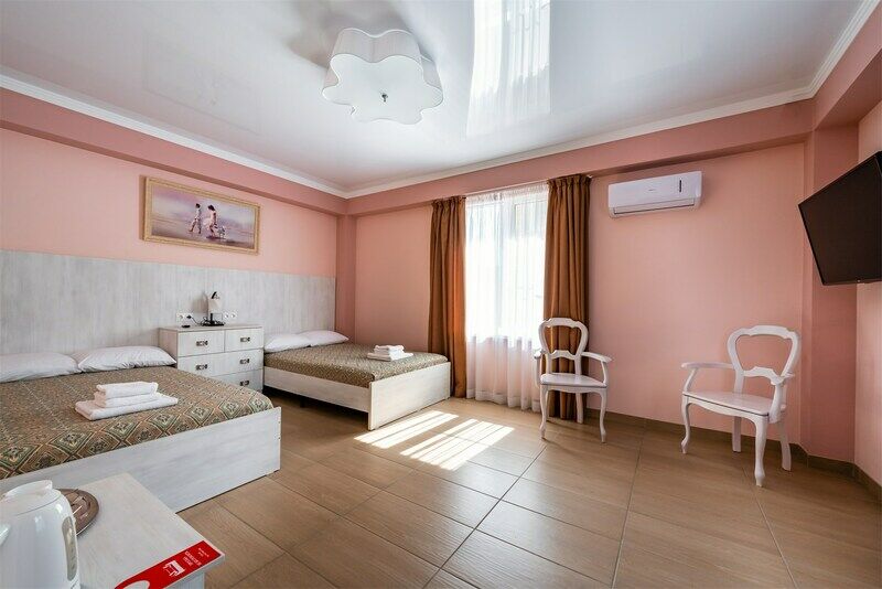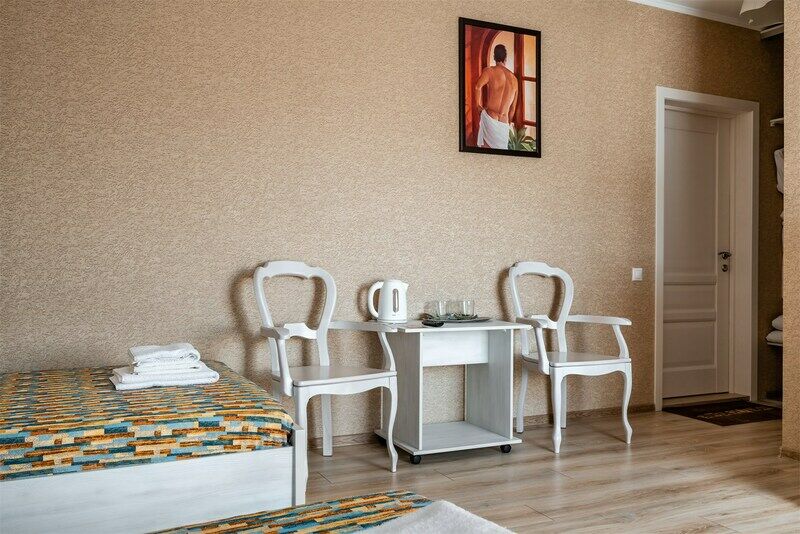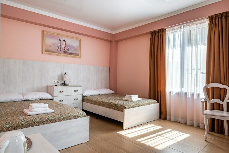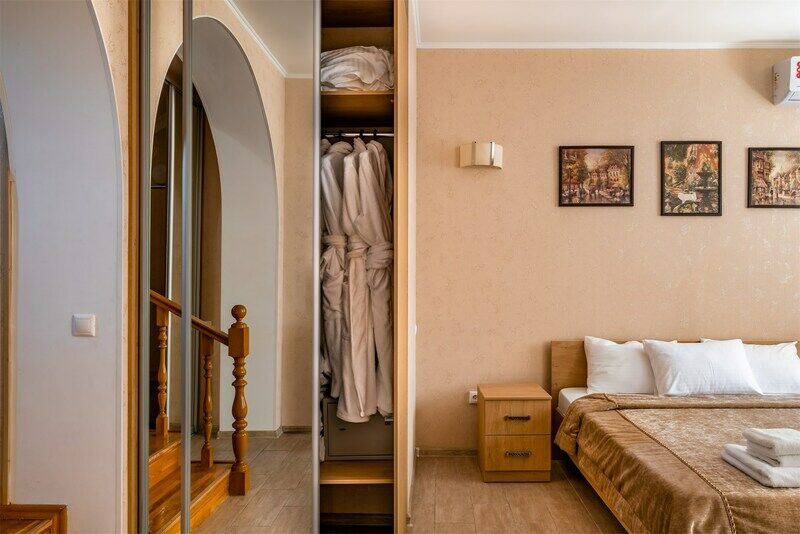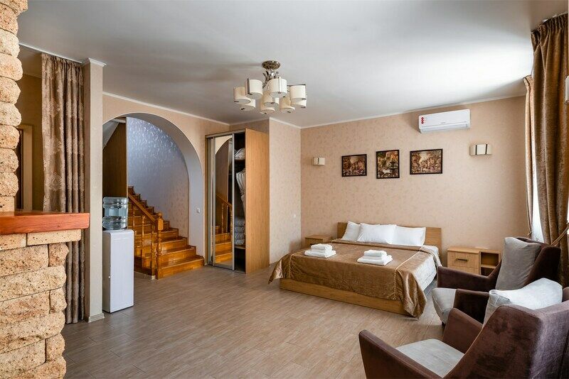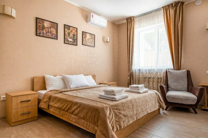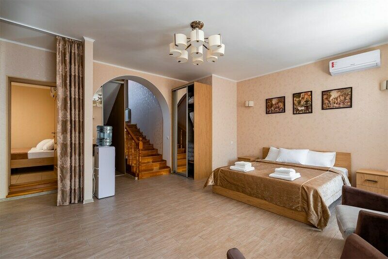 35 к.м. Двухкомнатный номер со собственной ванной комнатой и отдельным входом. Номер оснащендвуспатью кроватью размера king-size , находится на первом этаже. В номере имеется спутниковое ТВ, кондиционер, отопление.