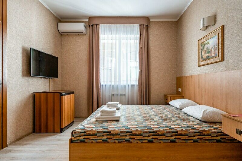 Двухместный номер Делюкс со собственной ванной комнатой площадью 28 кв.м. Окна номера выходят на три стороны и демонстрируют красивый вид. Номер оснащен просторными полутороспальными кроватями для каждого гостя. В номере имеется спутниковое ТВ, кондицион