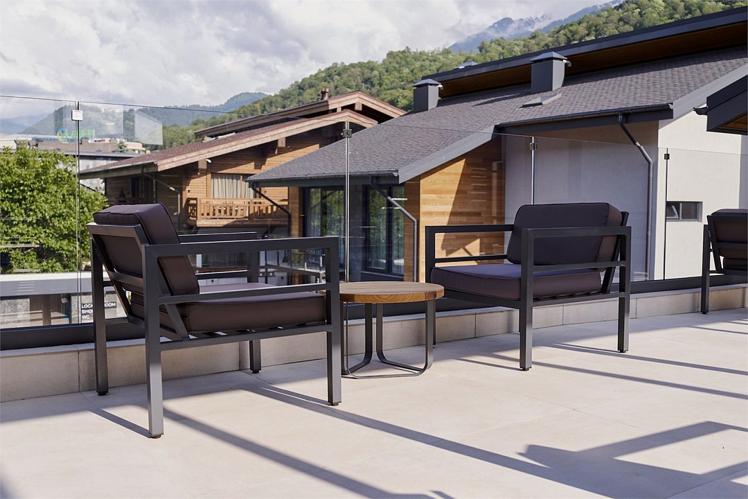 Для проживания отель предлагает 42 номера нескольких категорий. Современный интерьер выполнен в приятной глазу цветовой гамме. Приятный и качественный отдых обеспечит комфортабельная мягкая мебель. Гости смогут воспользоваться Wi-Fi, ЖК-телевизором, кондиционером, электрическим чайником и собственной ванной комнатой. На балконе обустроена зона для отдыха, оттуда открывается вид на лес и горы.