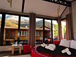 Отдельный коттедж со своей территорией (столики, садовая мебель), с собственным джакузи, сан узлом, и выходом на общую мангальную зону . Состоит из 2 этажей , имеет на первом этаже зал с кухонной зоной и две спальни на 2-м этаже, . Рассчитан до 6 человек. В доме располагается балкон, мини-кухня, посуда, стиральная машина, ковровое покрытие с теплым полом. Телевизор, проектор, кондиционеры, СВЧ, сейф, Wi-Fi.Услуги и удобства
