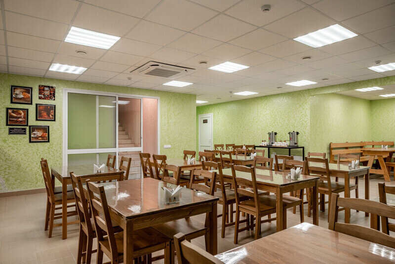 Вкусные завтраки в небольшой столовой. Рядом есть магазин, аптека, кафе и ресторанчики.