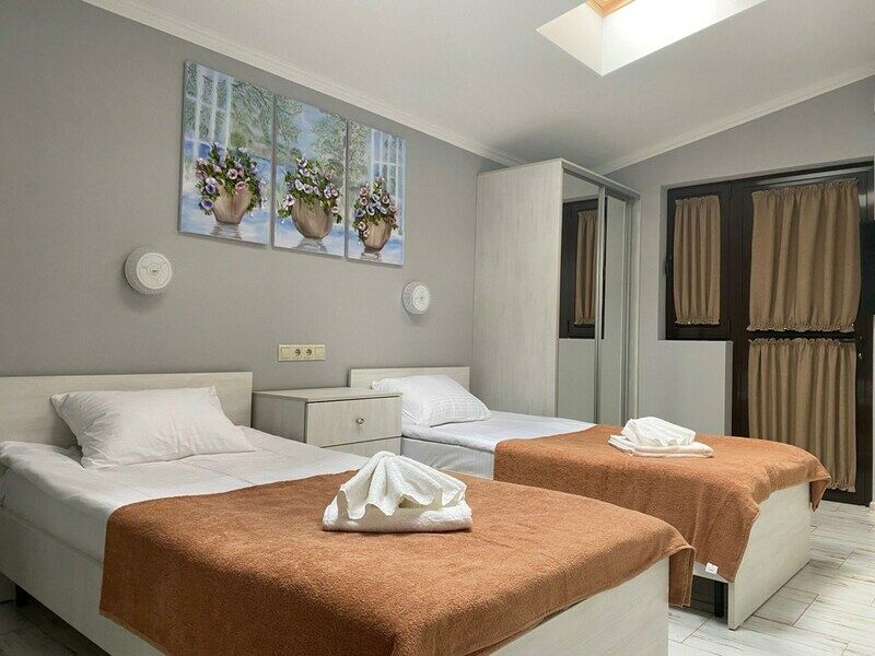 2 односпальные кровати, тв, душ, туалет, кондиционер, теплый пол, wifi, собственный дворик с сушилкой