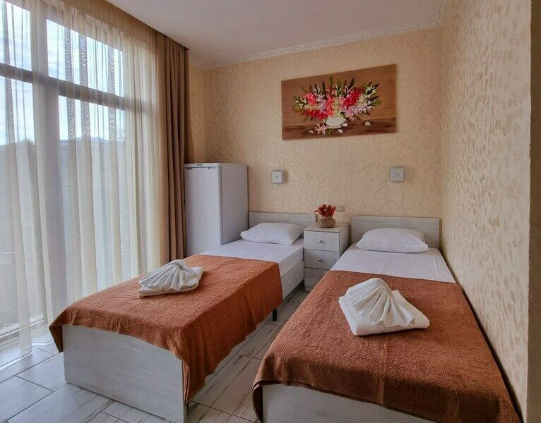 Два небольших для меня недостатка . Это отсутствие лифта. Сложно с тяжелыми чемоданами будет. Но это явление, как я поняла , во многих небольших отелях наших курортов . И еще один недостаток - в душе висит штора , так как душевое пространство не большое - то приходилось касаться.