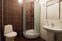 Чайная станция, набор посуды, санузел с душевой кабиной, биде, средства гигиены, халат, тапочки, фен.