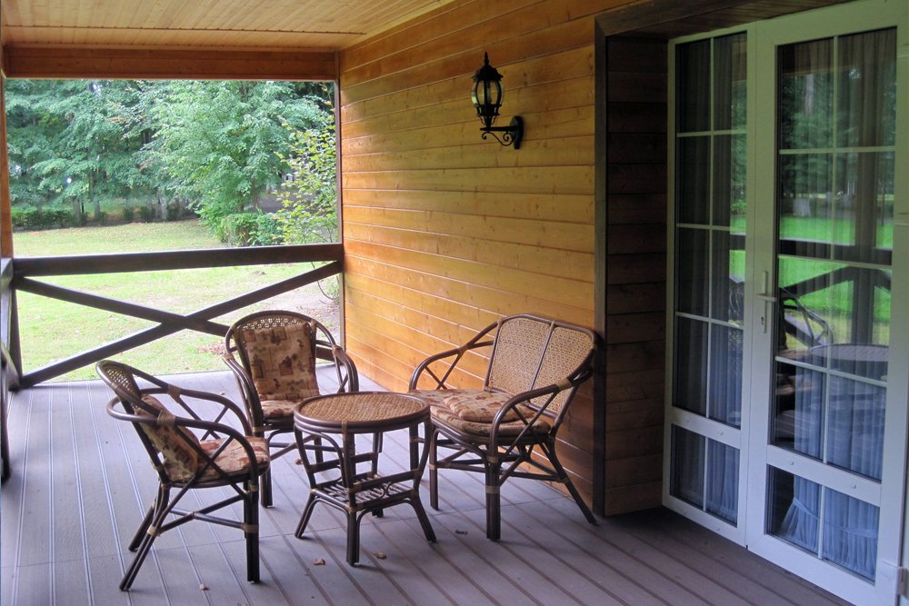 До шести мест (четыре основных плюс два дополнительных). Две просторные спальни с отдельным санузлом с душевой кабиной в каждой, платяным шкафом. В гостиной угловой диван, журнальный столик, кухонный уголок с микроволновой печью и посудой, чайник. Веранда.