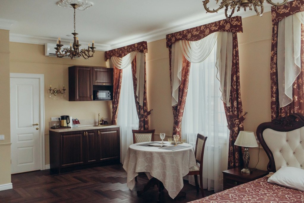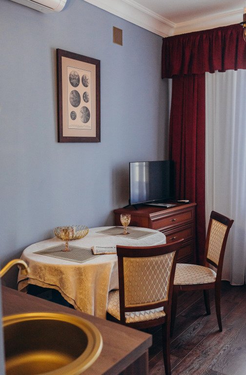 В номере вы найдёте телевизор. Оснащение зависит от выбранной категории номера.