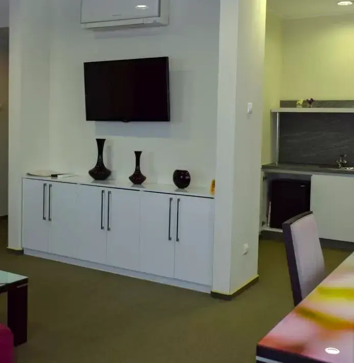 Чтобы вы могли отдохнуть после долгого дня, в номере есть телевизор и халат. Перечисленные услуги есть не во всех номерах.
