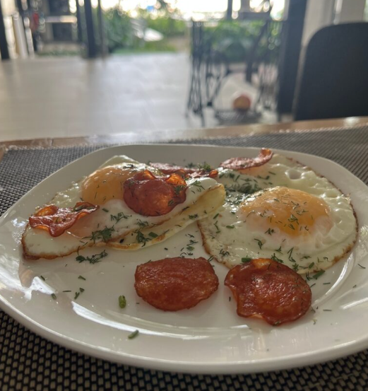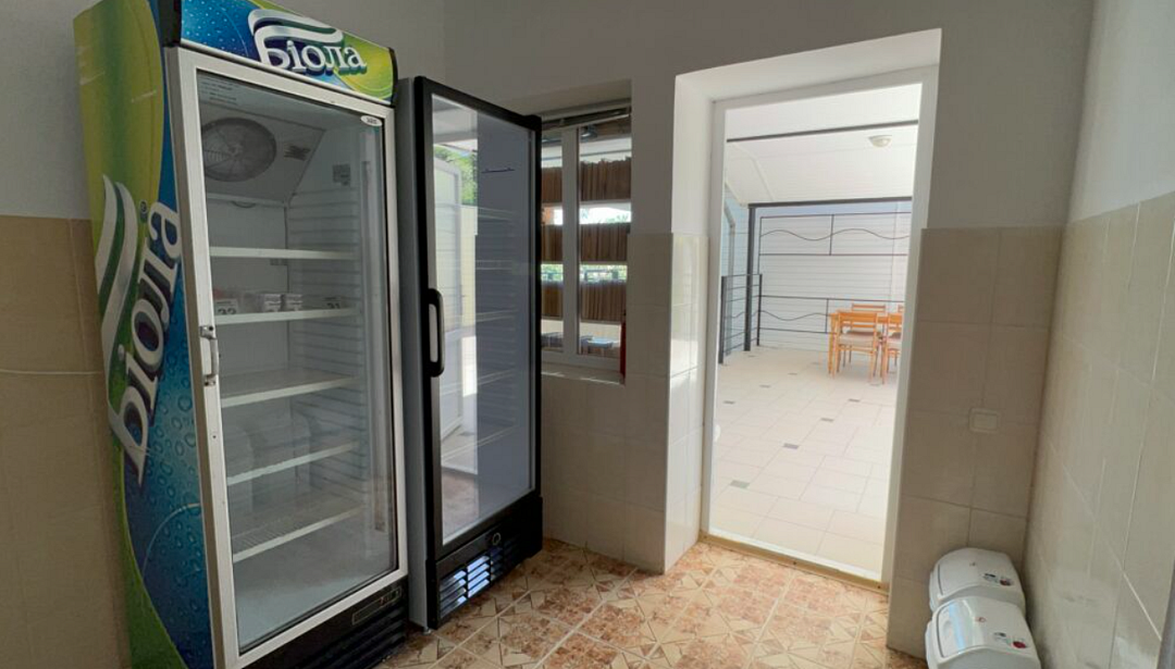 Повара кафе дома готовы предложить гостям разнообразной меню, включающее в себя блюда разных кухонь мира. Кроме этого, есть общая кухня с большим обеденным столом и необходимым оборудованием.