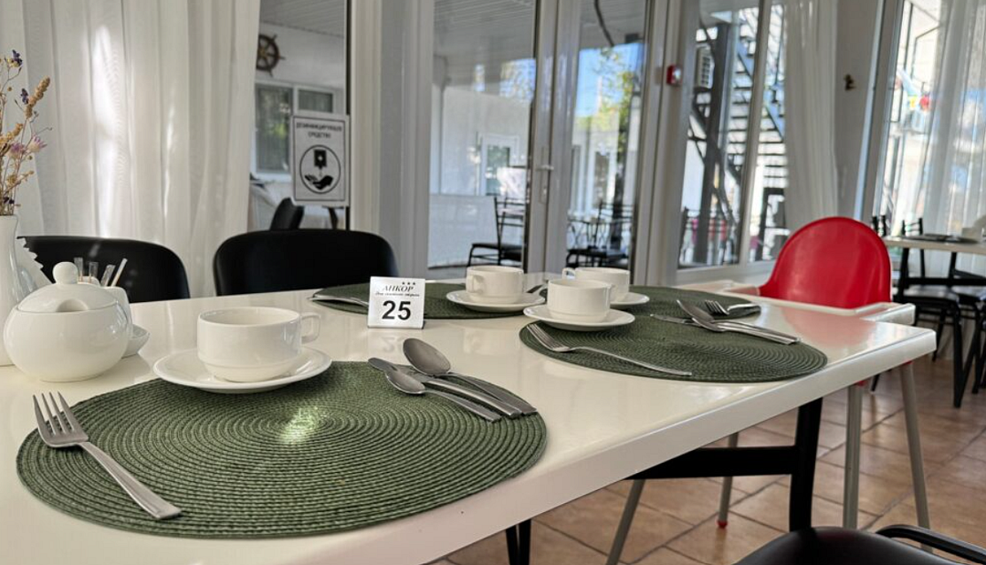 Режим работы: завтрак с 09:00 до 10:00, обед с 14:00 до 15:00, ужин с 19:00 до 20:00.