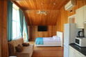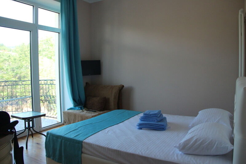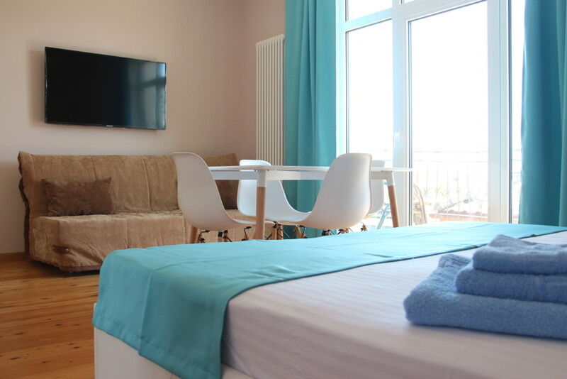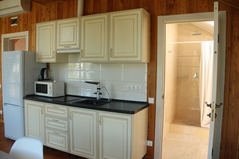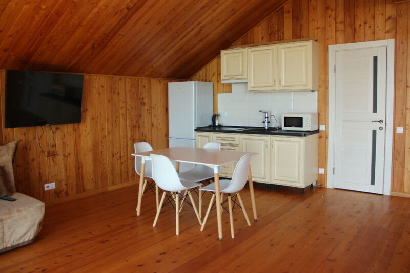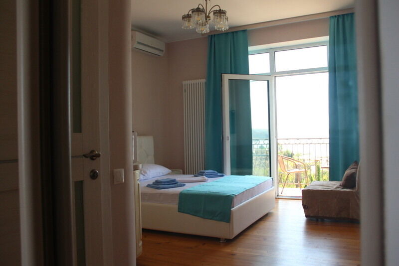 Видовой номер с полноценной кухней. Прямой вид на море, кровать с ортопедическим матрасом, пол из сибирской лиственницы, большая ванная комната с испанской плиткой, кондиционер, чайник, фен, постельное белье.