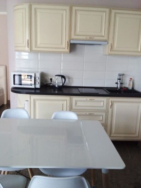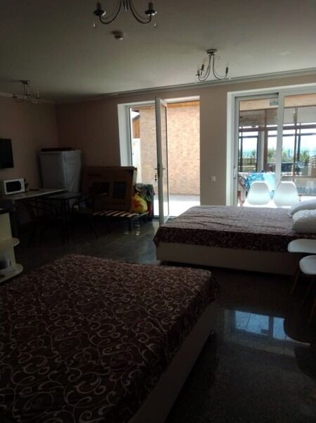 Огромный номер с видом на море и знаменитый Кара-Даг. Имеется ванная, полноценная кухня и отличная новая мебель. Постройка 2021 года, идеальное состояние. Море видно из всех окон и двух балконов.