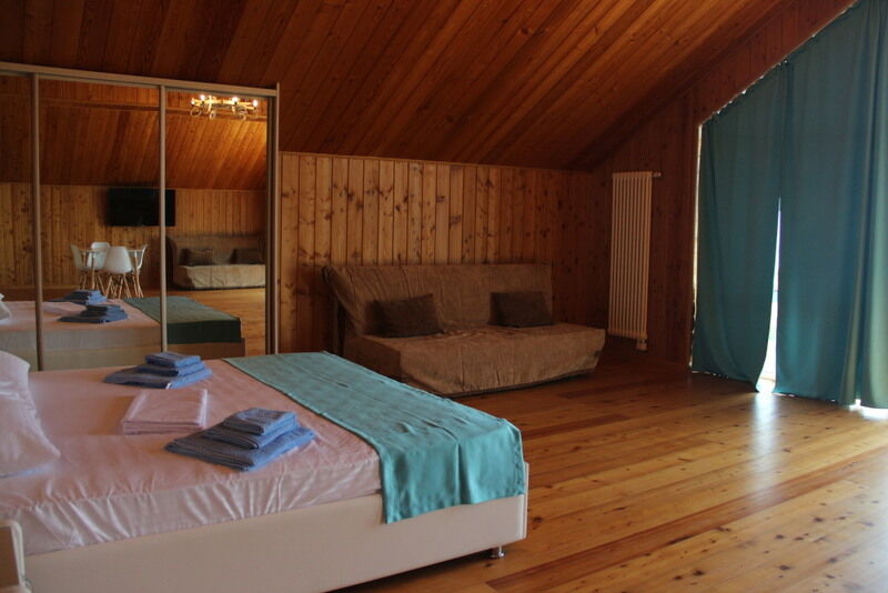 У нас 11 современных номеров класса Люкс и Апартаменты, беседка и с сентября сауна и крытый бассейн в доме.