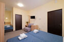 Wi-Fi, кондиционер, фен, электронные замки, микроволновая печь, банные полотенца, балкон, тумбы, шкаф для одежды, вешалки, обеденный стол, багажная тумба, зеркало, унитаз, раковина, мягкая мебель, кулер на этаже, пять односпальных кроватей, две ванные комнаты, стул, вид на парк, диван-кровать, внутренний телефон, телевизор с плоским экраном, мини-холодильник, частичный вид на море, два дивана-кровати, вешалки-плечики, можно с питомцамиВ номере