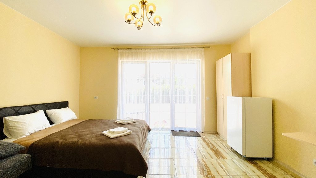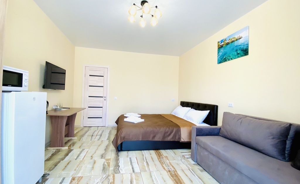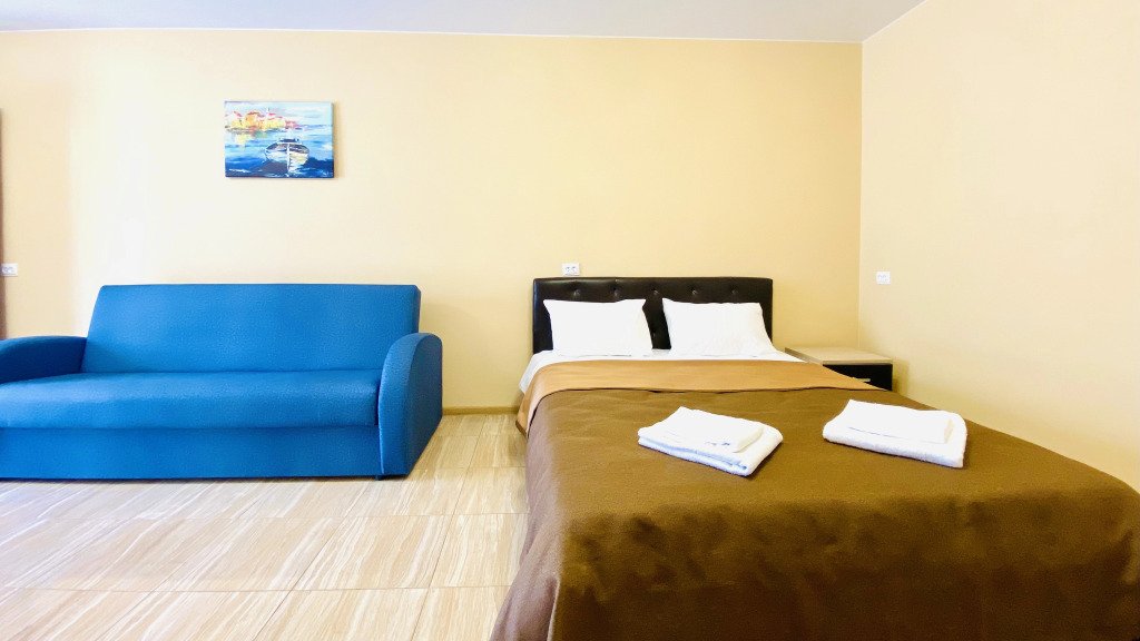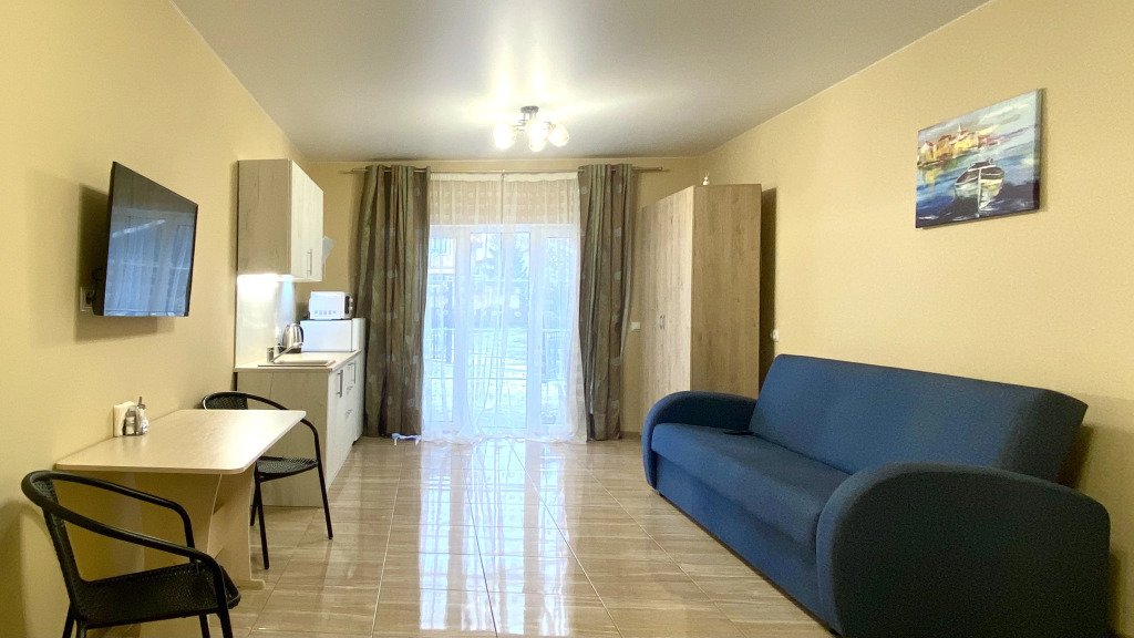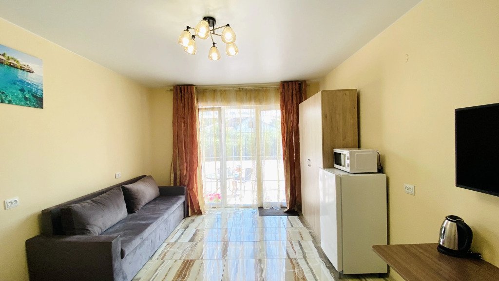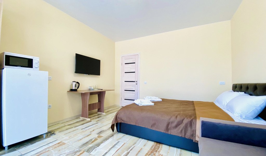 В вашем распоряжении 9 изолированных номеров, каждый из которых оборудован двуспальной кроватью, диваном, собственной ванной комнатой, обеденным столом, холодильником, микроволновой печью, чайником, посудой и телевизором.